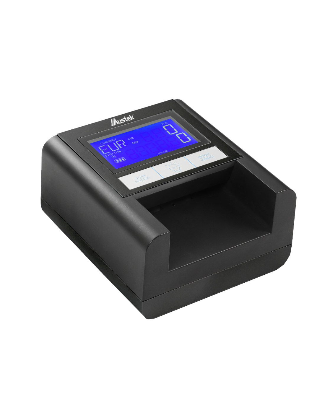 Mustek Detector Billetes Falsos D9. Monedas compatibles: Multidivisa, Tipos de detección: Infrarroja (IR), Tinta, Magnético, Metallic thread, Ultravioleta (UV), Color del producto: Negro. Fuente de energía: CC/Batería, Voltaje de entrada: 9 V. Ancho: 128 mm, Profundidad: 143 mm, Altura: 75 mm