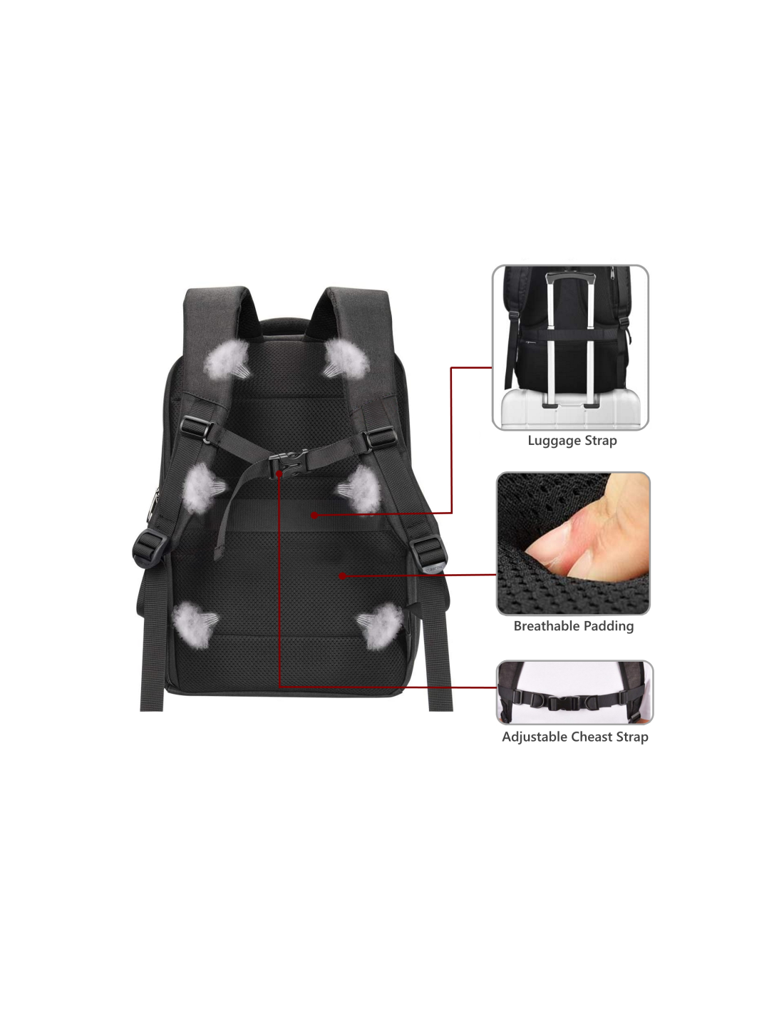 La mochila para portátil está diseñada para el uso diario gracias al panel trasero acolchado, las correas ajustables para los hombros, las correas de compresión, la correa del carro y la correa ajustable para el pecho.