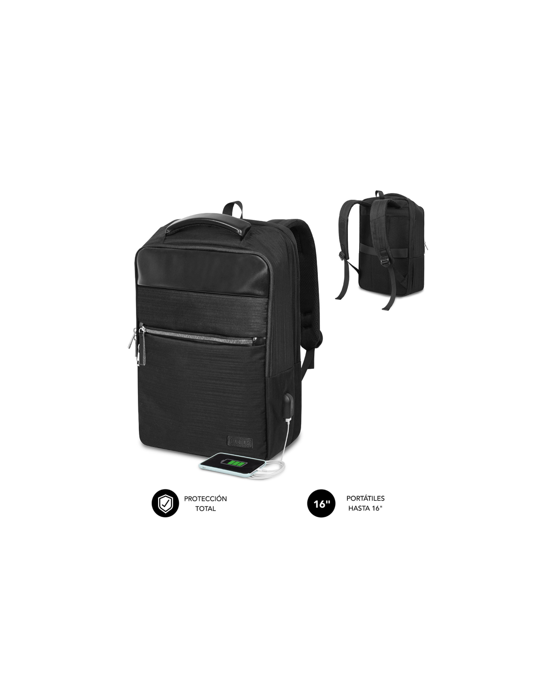 SUBBLIM Mochila de negocios Business V2 AP Backpack 16" Negro. Tipo de funda: Mochila, Tamaño máximo de pantalla: 40,6 cm (16"), Asa de transporte. Peso: 654 g. Coloración de superficie: Monocromo