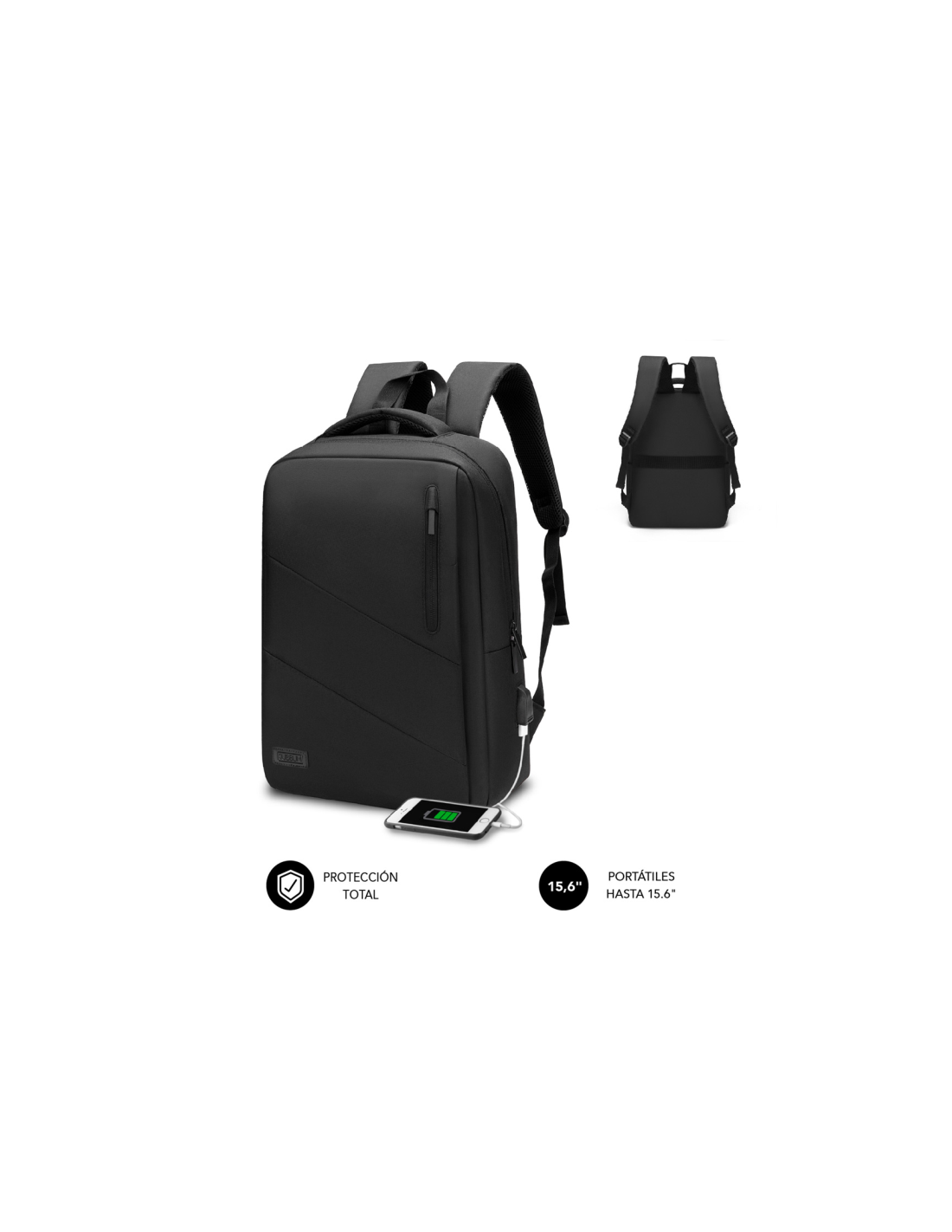 SUBBLIM City Backpack Mochila para portátil 15.6", Poliéster Oxford, Negra. Tipo de funda: Mochila, Tamaño máximo de pantalla: 39,6 cm (15.6"), Número de bolsillos frontales: 2, Asa de transporte, Tirante para hombro. Peso: 610 g. Coloración de superficie: Monocromo