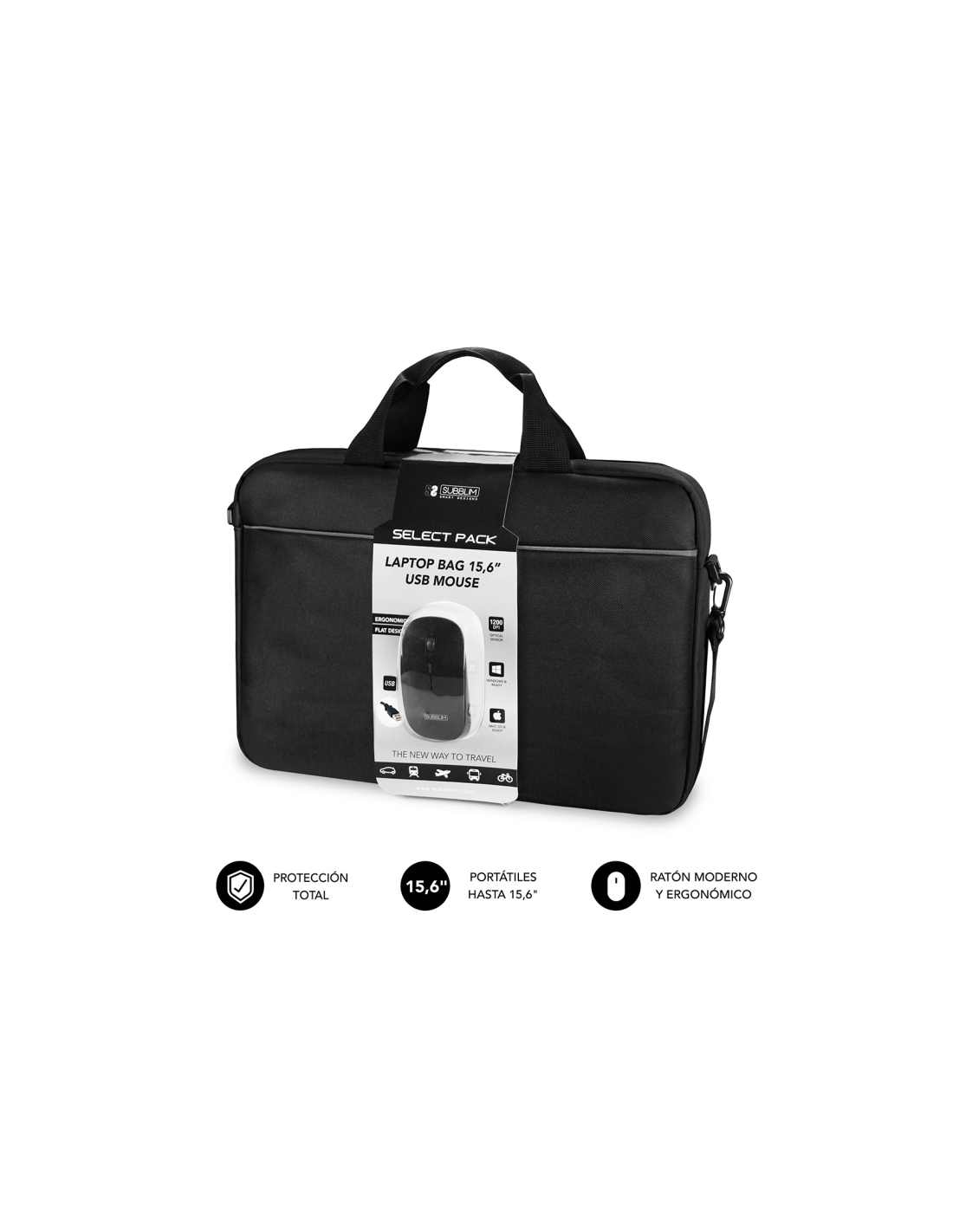 SUBBLIM Maletín con Ratón Select Pack Wired Mouse USB + Laptop bag 15,6"