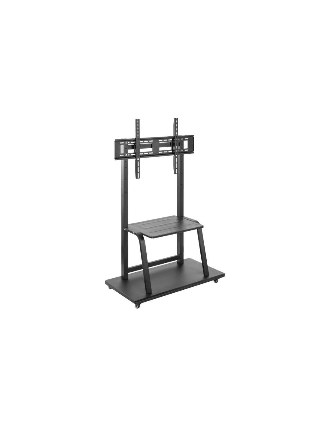 El resistente EW1544 es perfecto para televisores/ lavagna multimedia que soportan una carga máxima de 150 kg. La placa de TV se puede ajustar a la altura de visualización ideal. El práctico estante de soporte AV organiza y maximiza su espacio: con capacidad para hasta 20 kg, es el lugar óptimo para guardar todos sus equipos AV, computadoras portátiles y más. Proporciona una base sólida pero móvil para televisores de gran tamaño. Las cuatro ruedas con bloqueo le brindan la mejor movilidad y la máxima estabilidad.