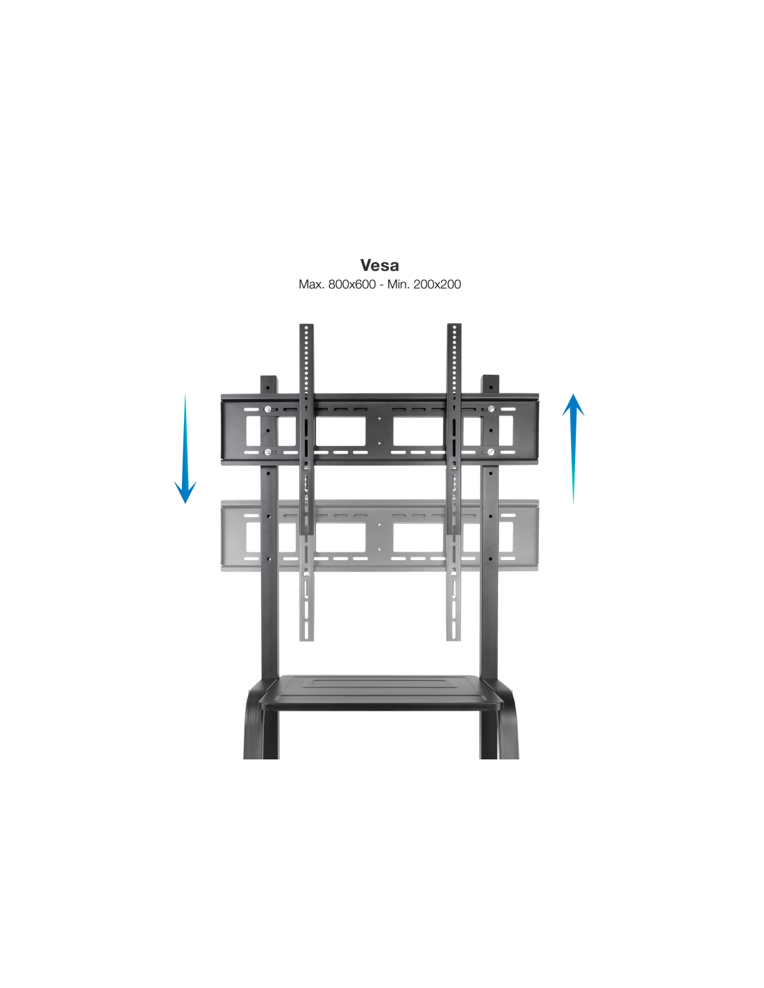 TooQ Coloso Soporte de Suelo con Ruedas para Pantalla 37"-100". Capacidad máxima de peso: 150 kg, Tamaño mínimo de pantalla: 94 cm (37"), Tamaño máximo de pantalla: 2,54 m (100"), Compatibilidad con interfaz de montaje (min): 200 x 200 mm, Compatibilidad con interfaz de montaje (max): 800 x 600 mm. Rango de ajustes de altura: 1085 - 1475 mm. Color del producto: Negro