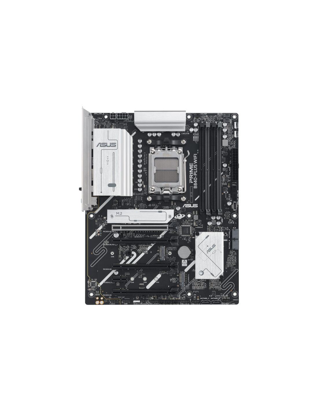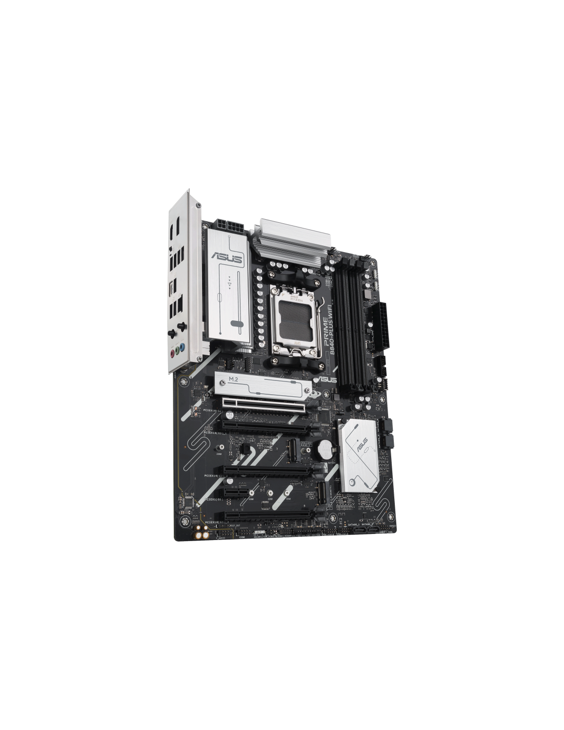 ASUS PRIME B840-PLUS WIFI. Fabricante de procesador: AMD, Socket de procesador: Zócalo AM5, Procesador compatible: AMD Ryzen 7000 Series, AMD Ryzen 8000 Series, AMD Ryzen 9000 Series. tipos de memoria compatibles: DDR5-SDRAM, Memoria interna máxima: 192 GB, Tipo de ranuras de memoria: DIMM. Interfaces de disco de almacenamiento soportados: M.2, SATA III, Tipos de unidades de almacenamiento admitidas: HDD & SSD, Niveles RAID: 0, 1, 5, 10. Tipo de interfaz ethernet: 2.5 Gigabit Ethernet, Estándar Wi-Fi: Wi-Fi