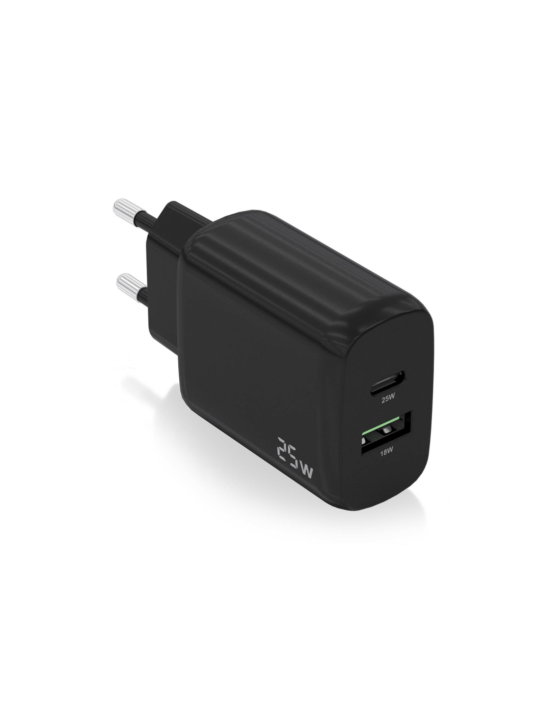 Cargador USB-C 25W para cargar portátiles, móviles, cámaras y tablets etc. Diseño muy elegante, moderno y práctico.