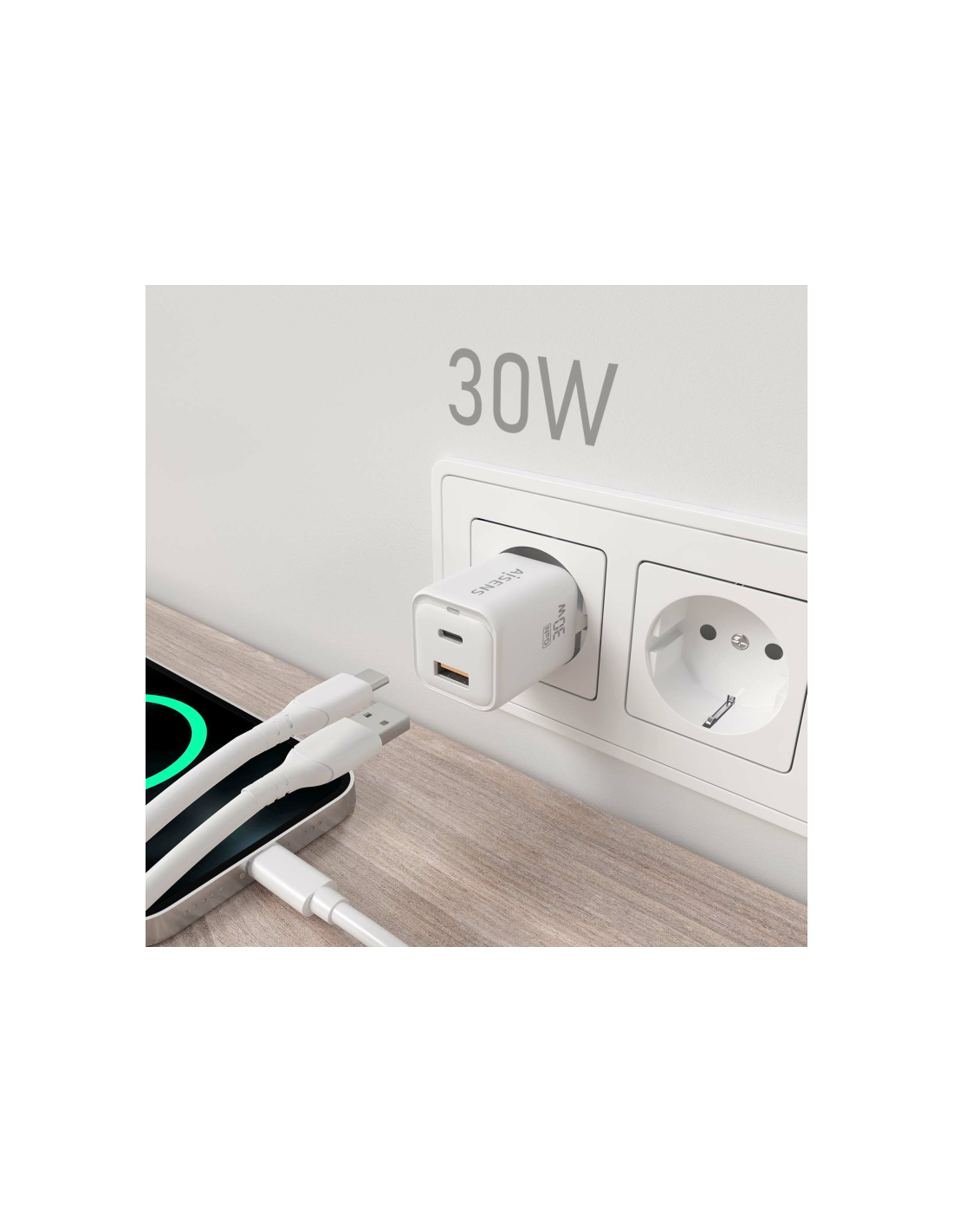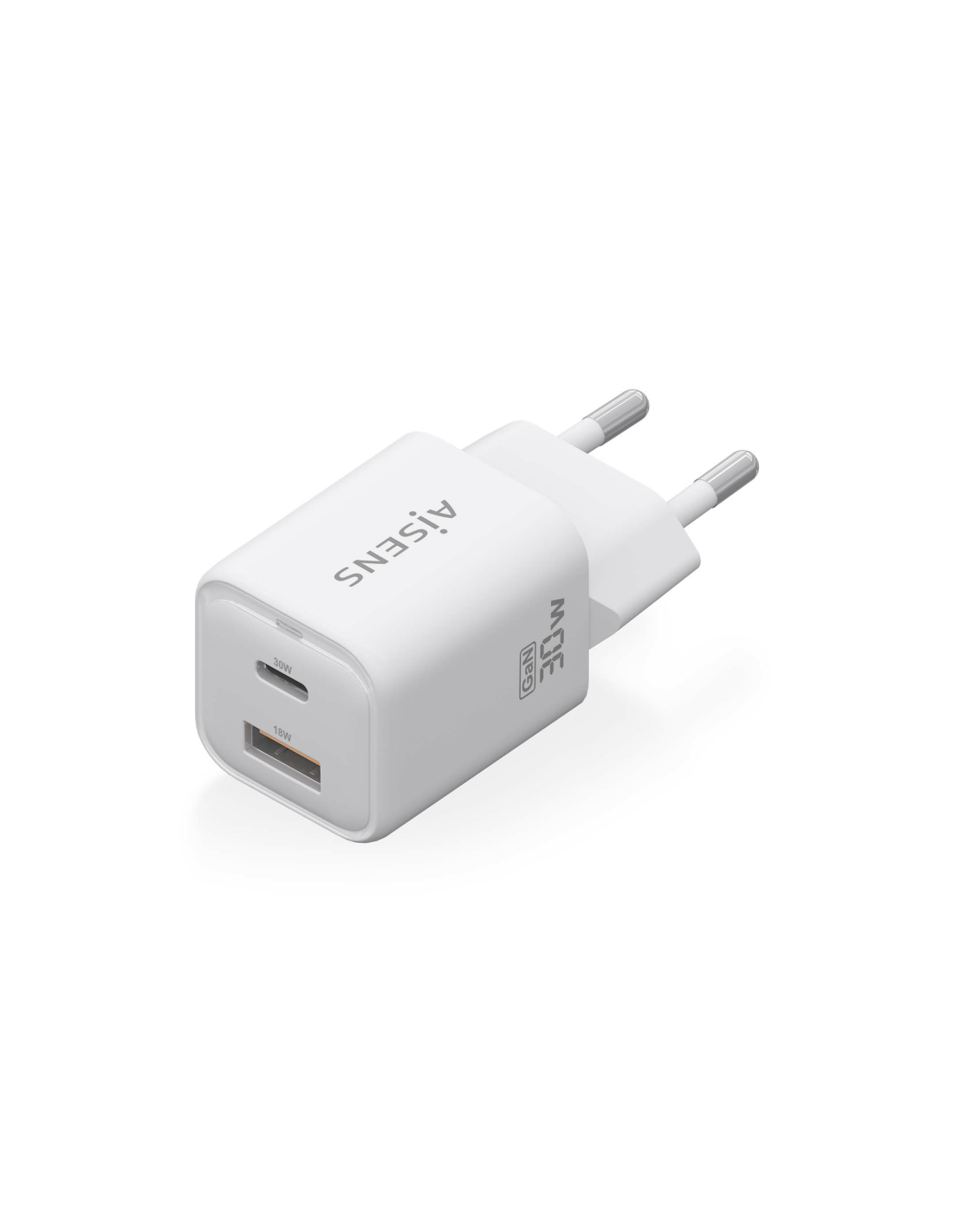 AISENS Cargador Gan 30W, 1xUSB-C PD3.0 QC4.0, 1xUSB-A QC3.0, Blanco. Tipo de cargador: Interior, Alimentación: Corriente alterna, Compatibilidad del cargador: Universal. Voltaje de entrada: 100 - 240 V. Cantidad de puertos USB 2.0: 1, Número de puertos USB Tipo C: 1, Carga rápida, Funciones de protección de poder: Sobrecarga, Cortocircuito. Color del producto: Blanco