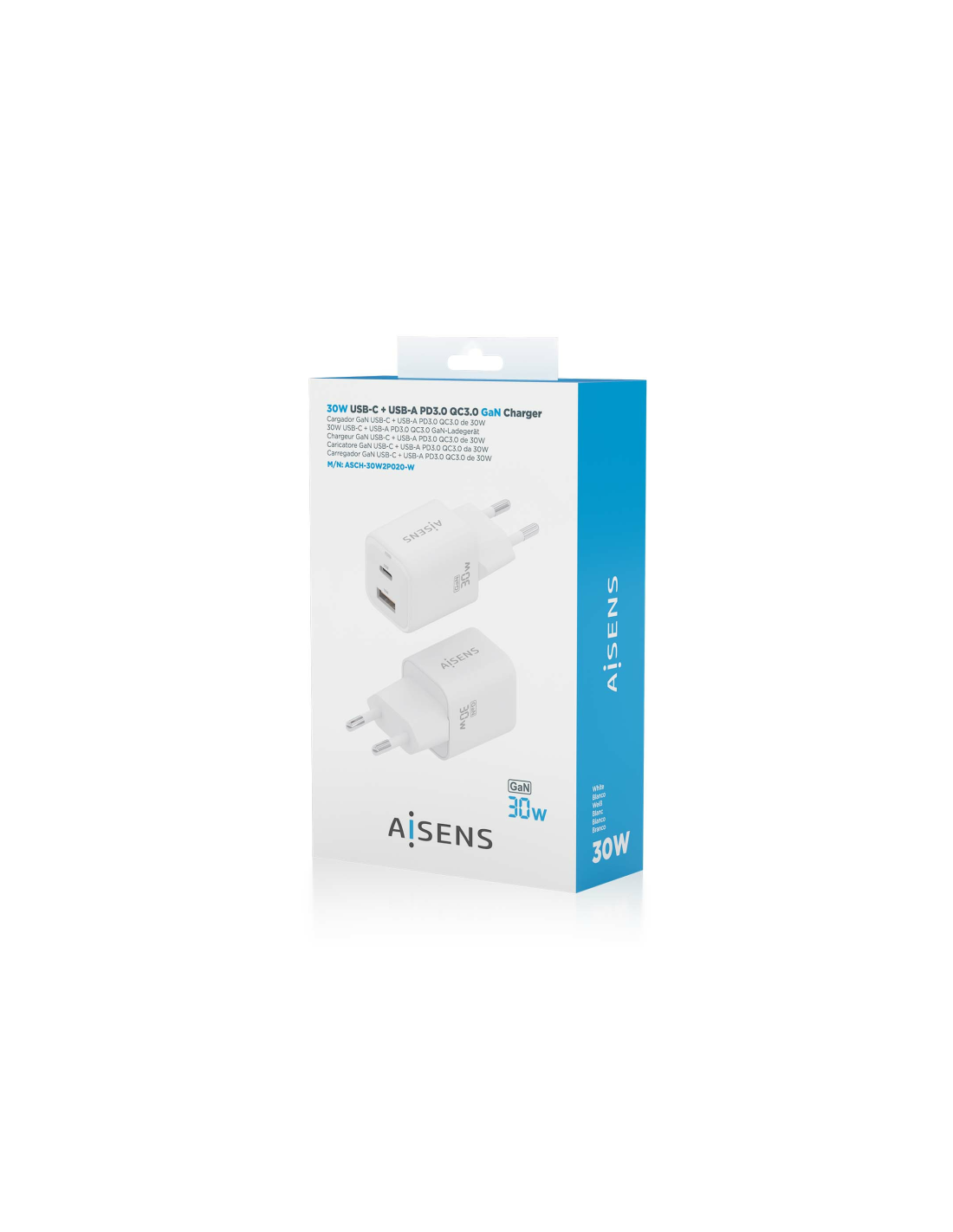 AISENS ASCH-30W2P020-W cargador de dispositivo móvil Universal Corriente alterna Carga rápida Interior