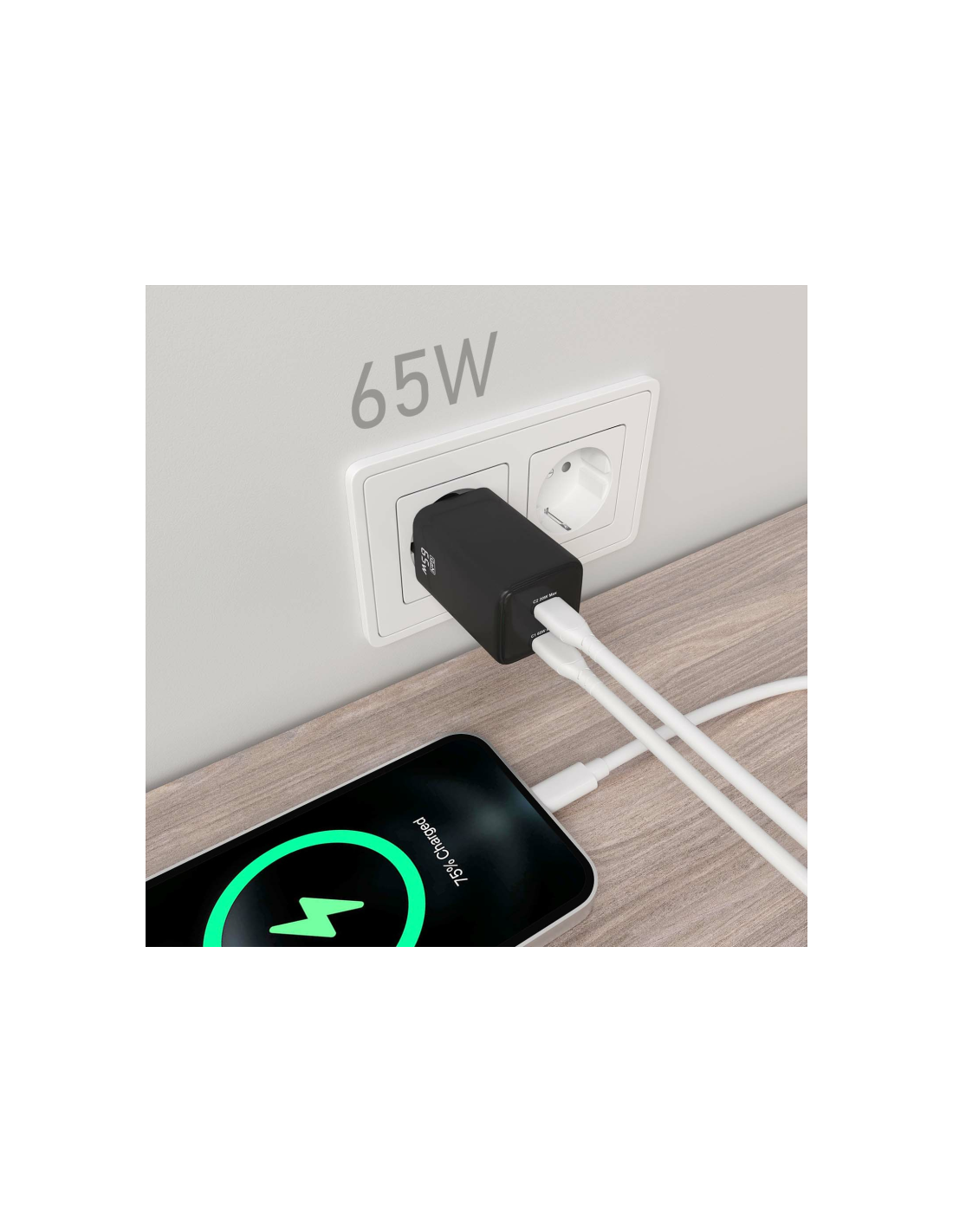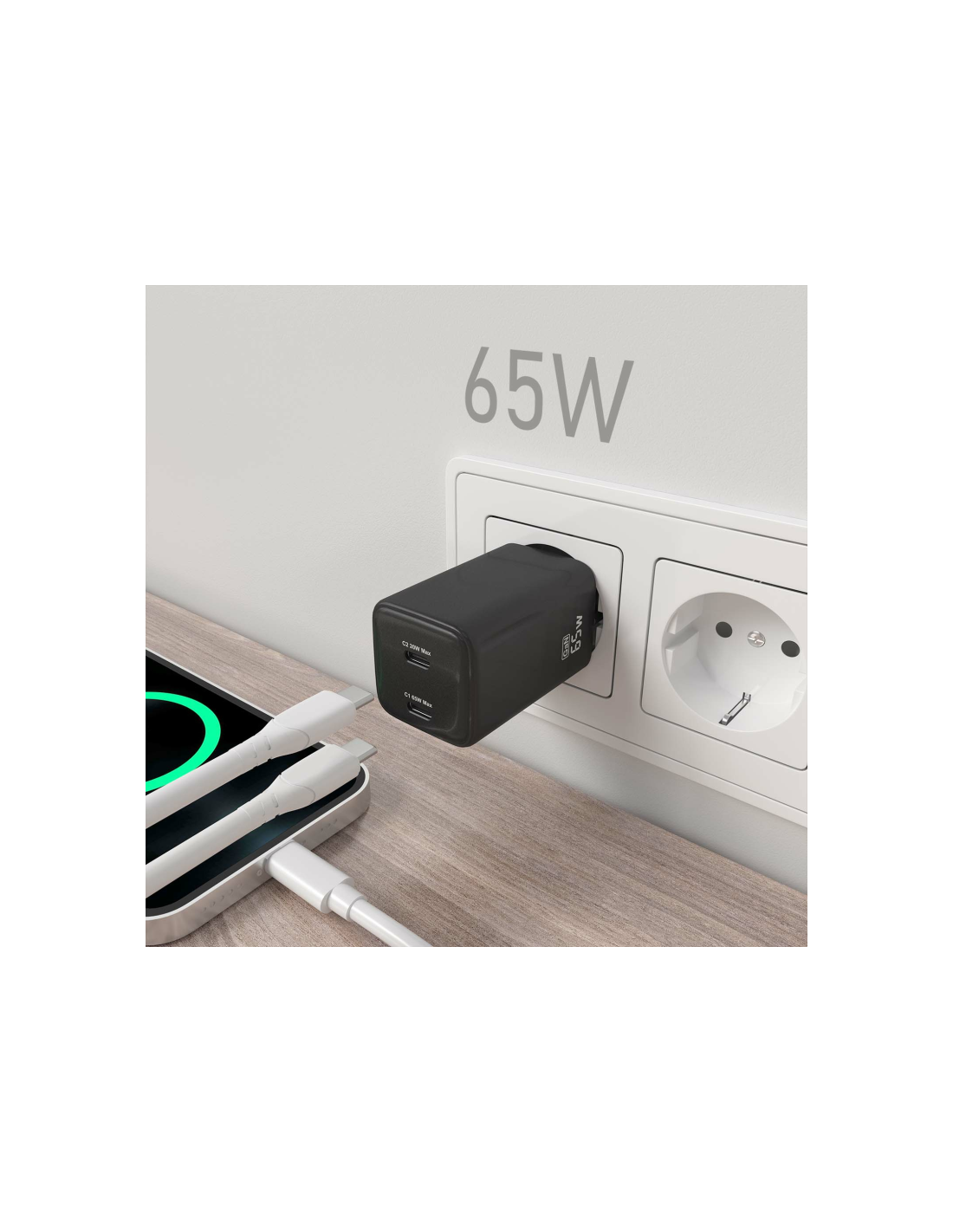 AISENS® – Cargador GaN USB-C 65W para cargar portátiles, móviles, cámaras y tablets etc.