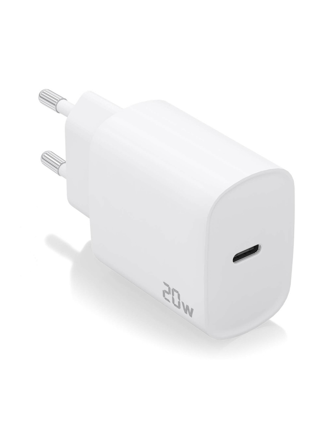 Cargador USB-C 20W para cargar móviles, cámaras y tablets etc. Diseño muy elegante, moderno y práctico.