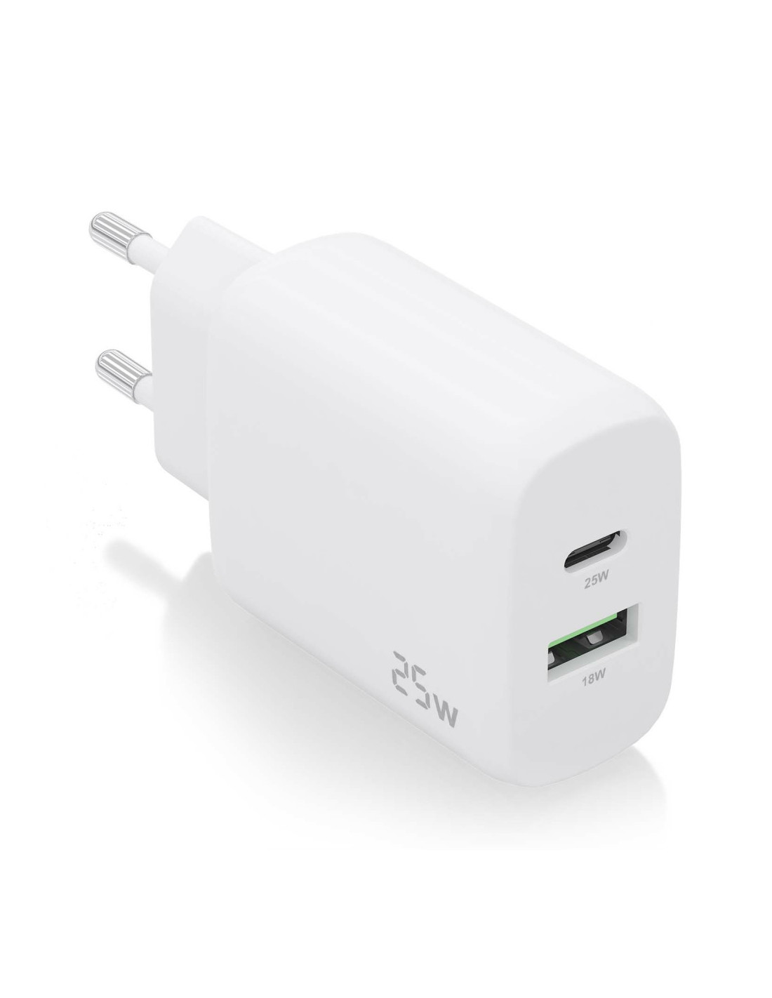 Cargador USB-C 25W para cargar portátiles, móviles, cámaras y tablets etc. Diseño muy elegante, moderno y práctico.