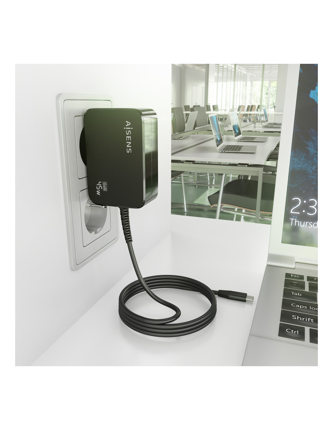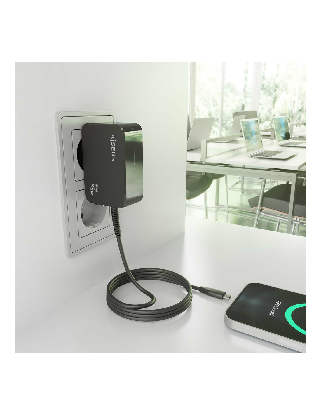 Aisens - Cargador GaN 45W PD3.0 1XUSB-C 1.8m, Negro