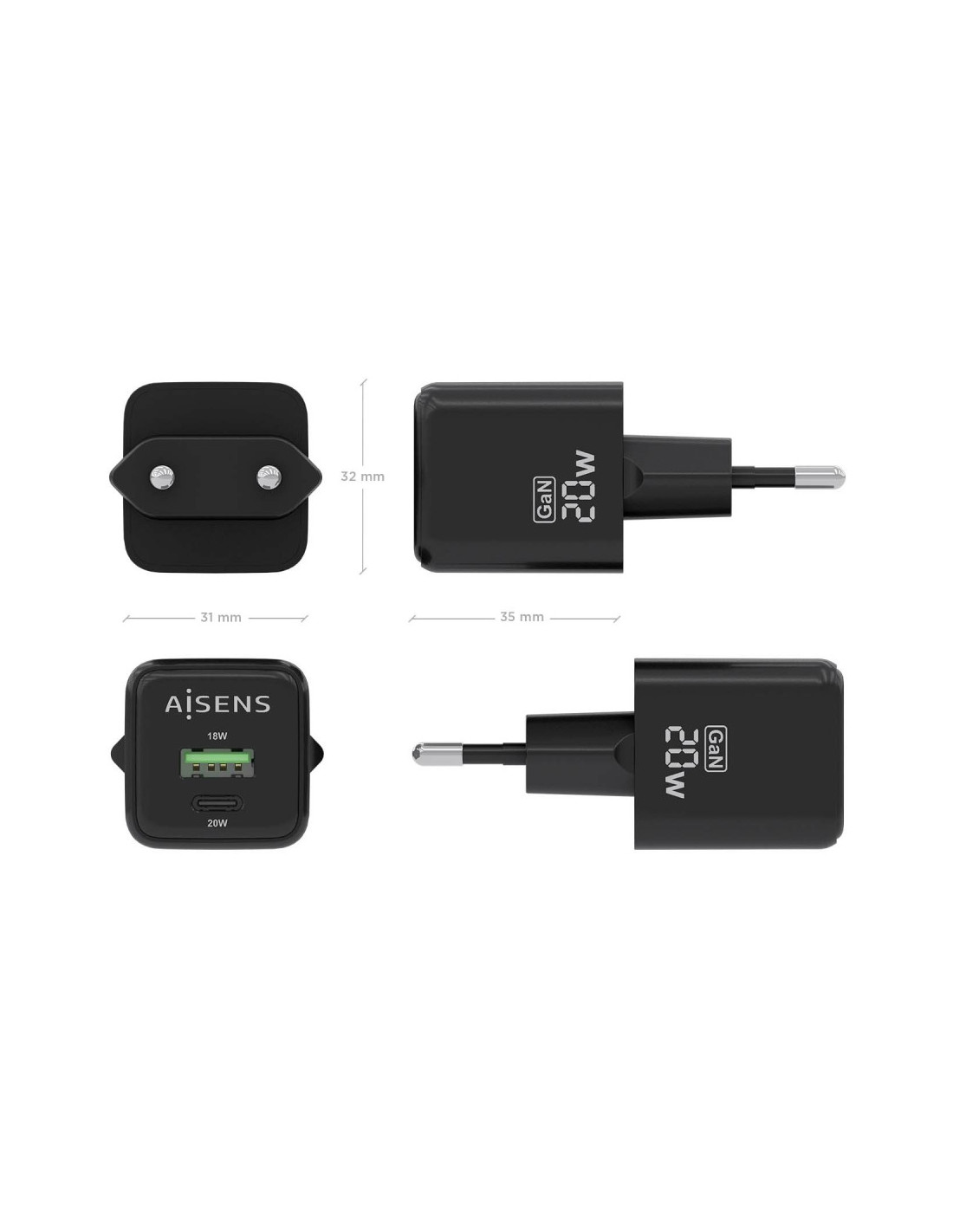 AISENS ASCH-20W2P011-BK Carregador de dispositiu mòbil Universal Negre AC Càrrega ràpida Interiors
