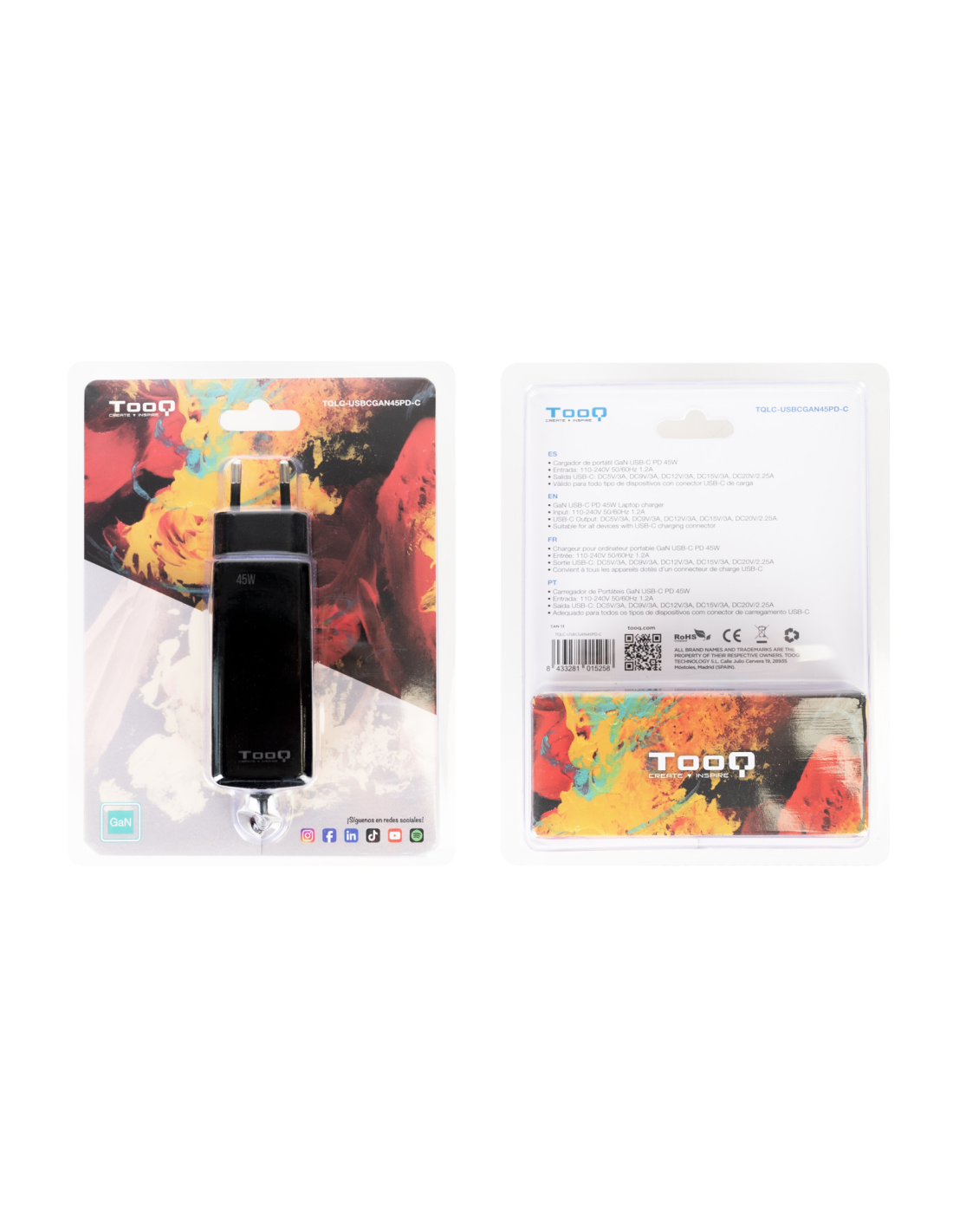 TooQ TQLC-USBCGAN45PD-C cargador de dispositivo móvil Portátil, Universal Corriente alterna Interior