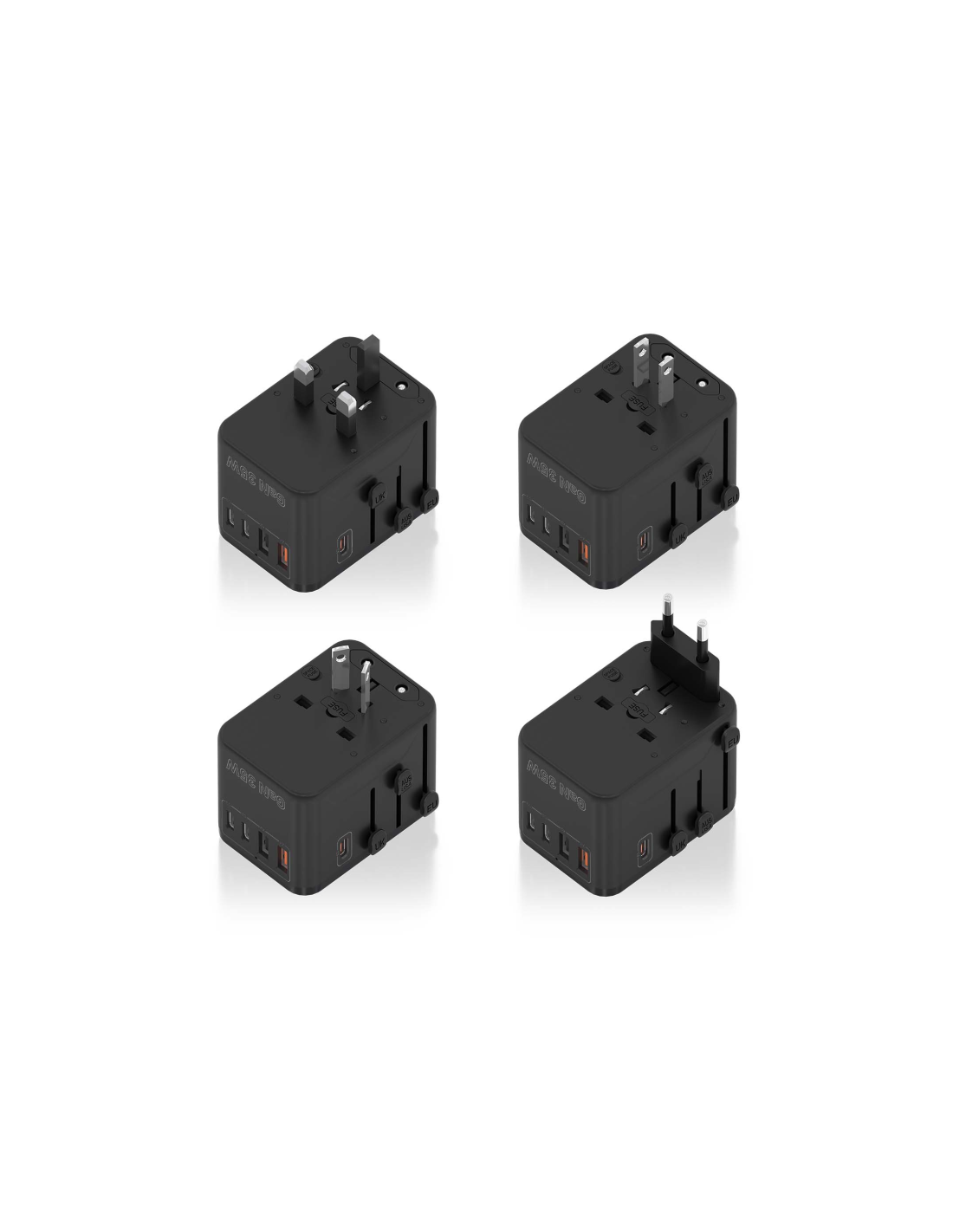 - Adaptador Universal de Viaje Todo-en-Uno: Este adaptador compacto y ligero está diseñado para más de 200 países y regiones, con 4 tipos de enchufes: Tipo C (Francia, Alemania, Italia, España etc.), Tipo G (Reino Unido, Hong Kong, Dubai etc.), Tipo A (EE.UU., Japón, México etc.), y Tipo I (China, Australia, Argentina etc.).
