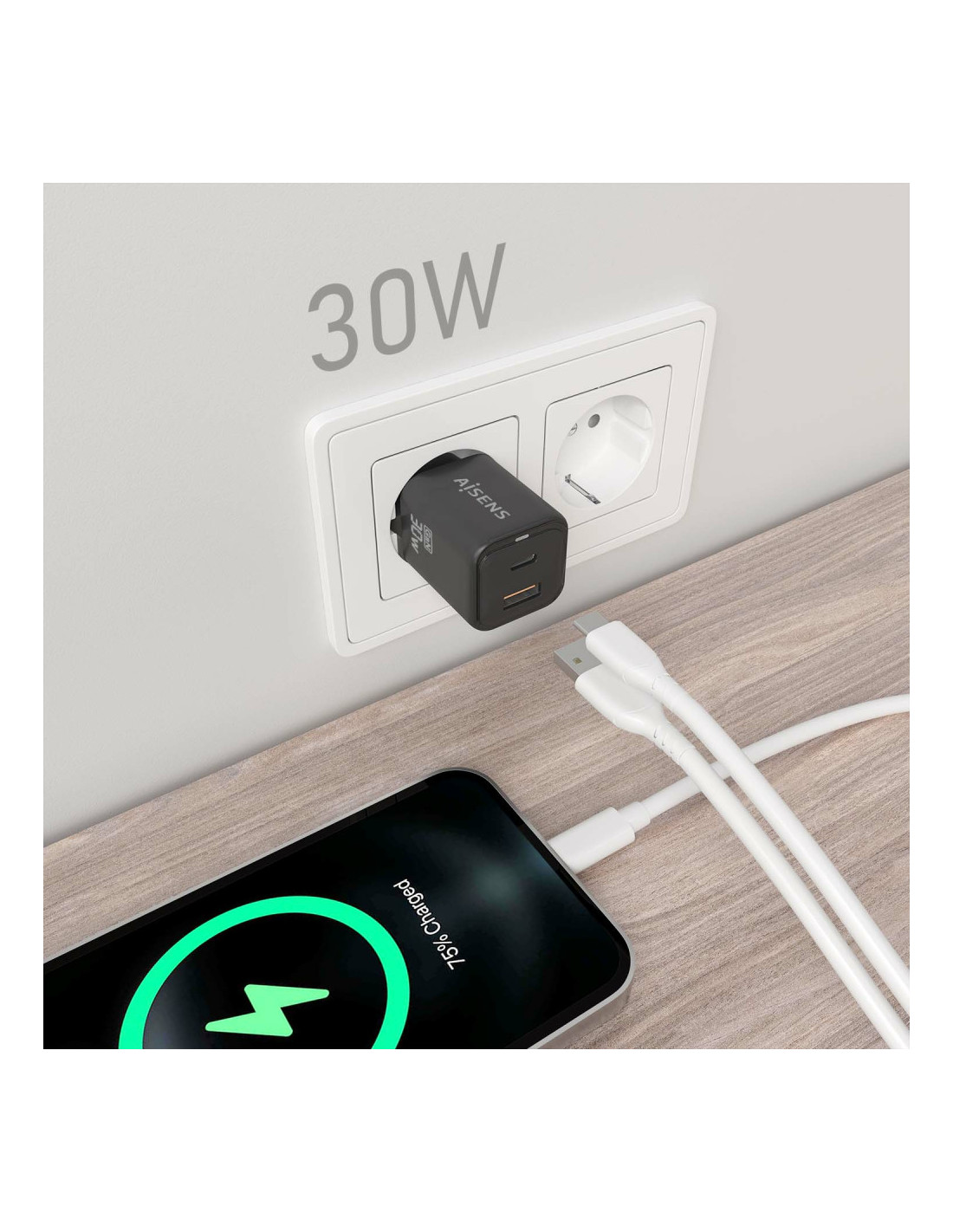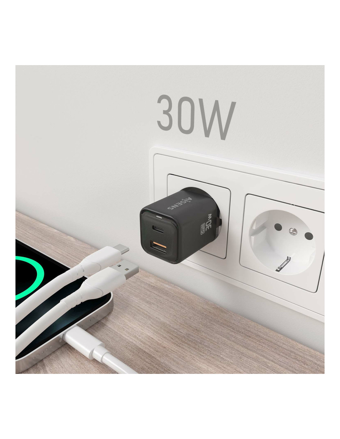 AISENS® – Cargador GaN USB-C 30W para cargar portátiles, móviles, cámaras y tablets etc.