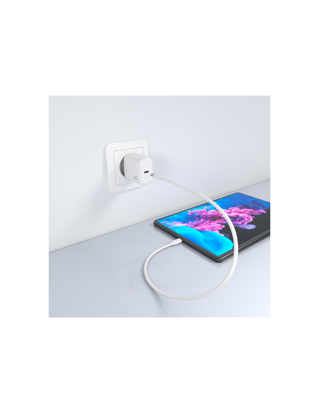 > Cargador GaN USB-C 30W para cargar portátiles, móviles, cámaras y tablets etc. Diseño muy elegante, moderno y práctico.