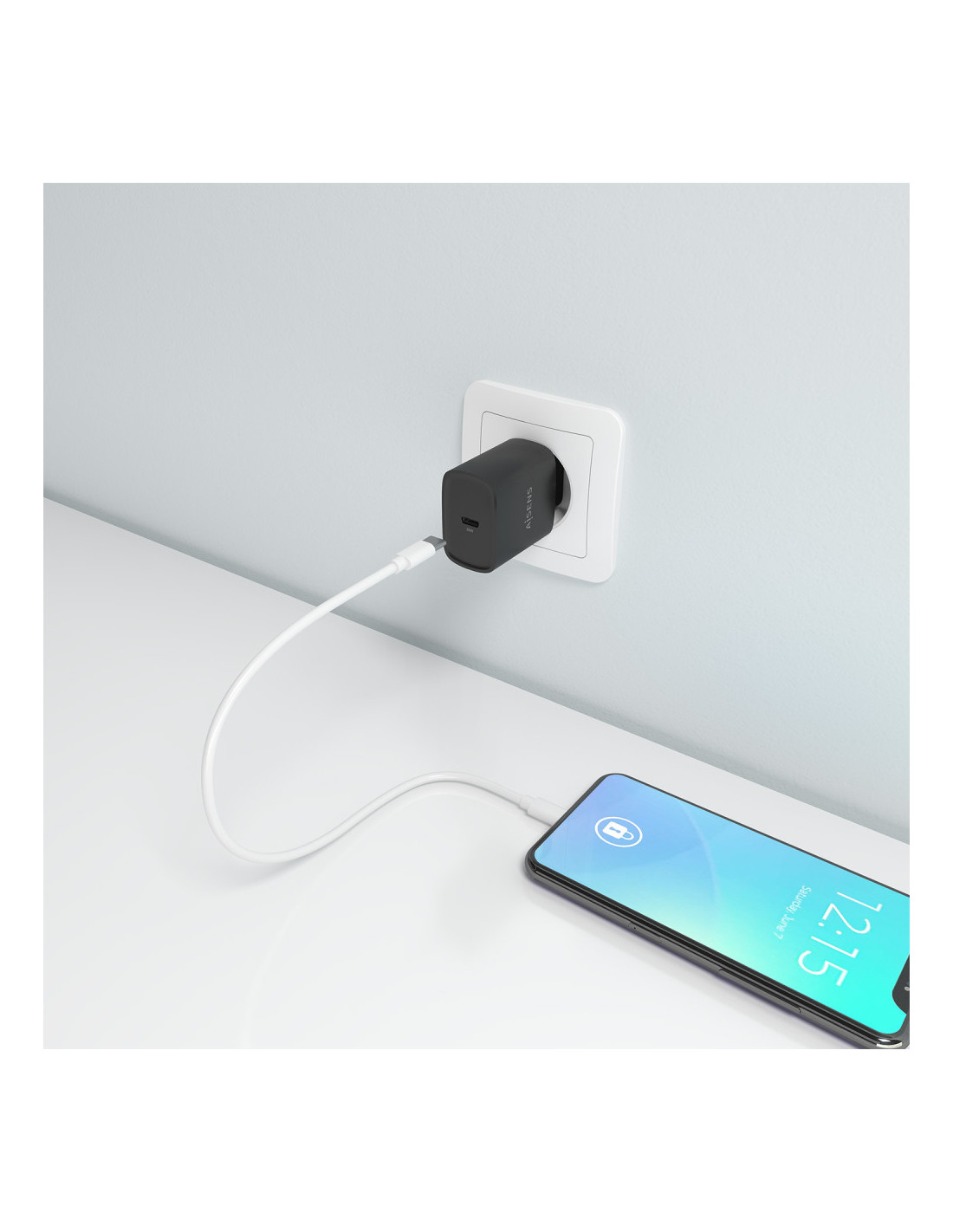 Cargador GaN USB-C 30W para cargar portátiles, móviles, cámaras y tablets etc. Diseño muy elegante, moderno y práctico.