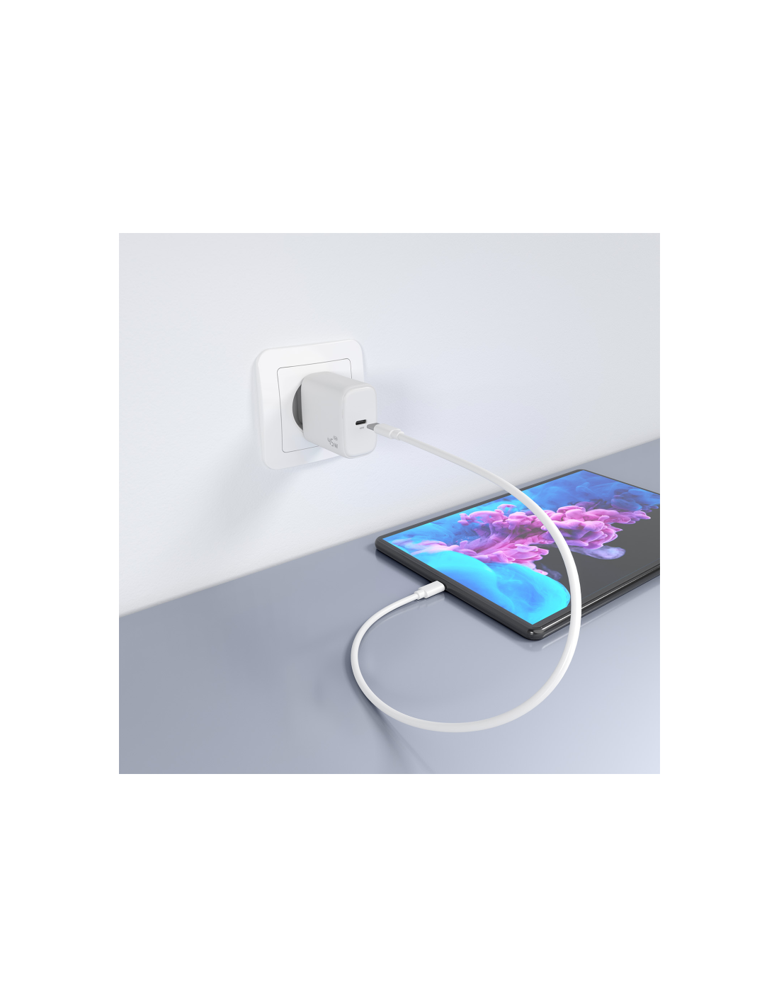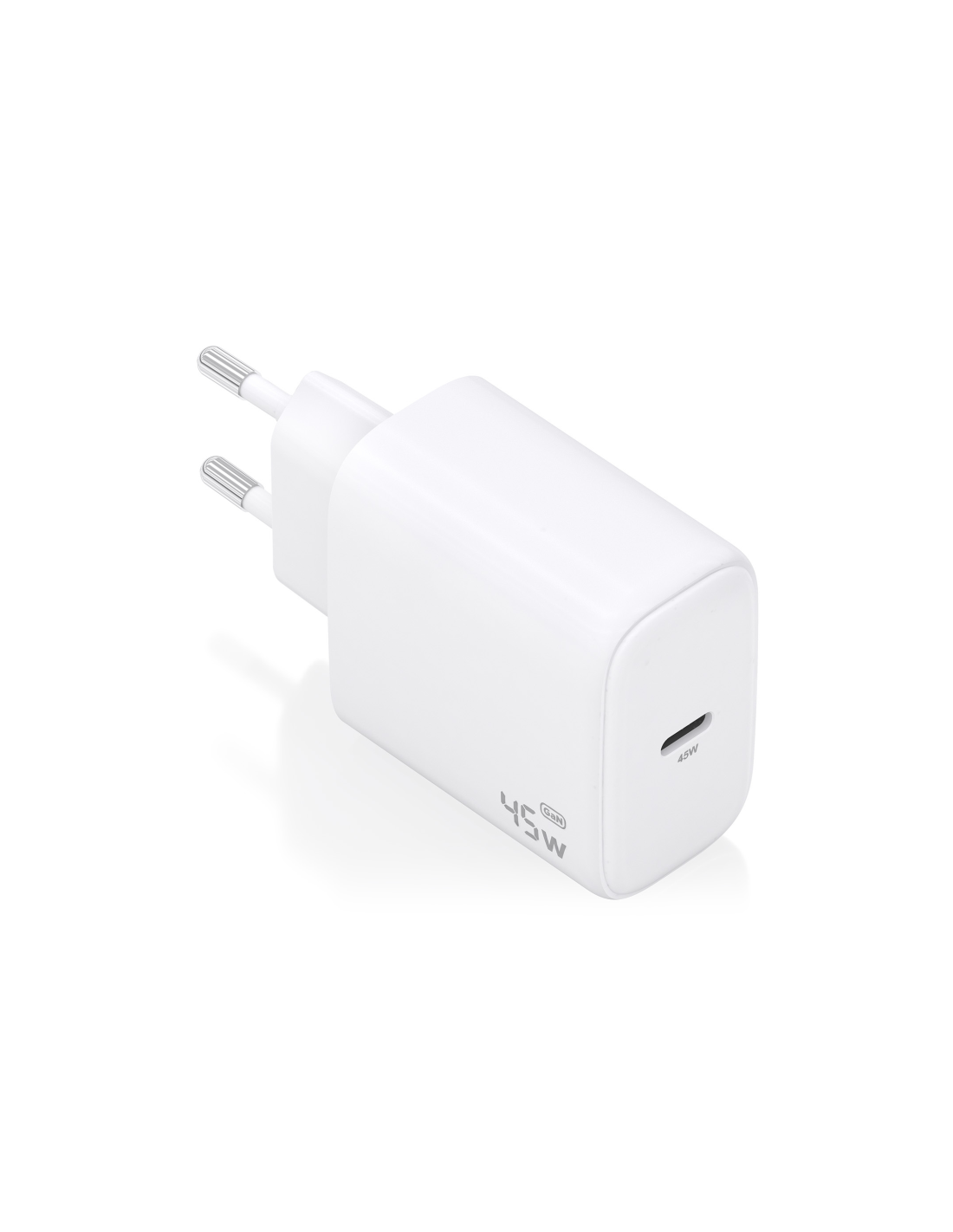 > Cargador GaN USB-C 45W para cargar portátiles, móviles, cámaras y tablets etc. Diseño muy elegante, moderno y práctico.