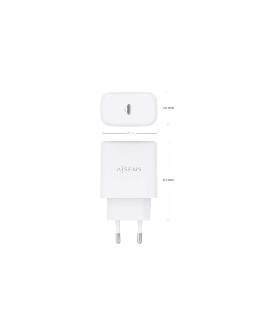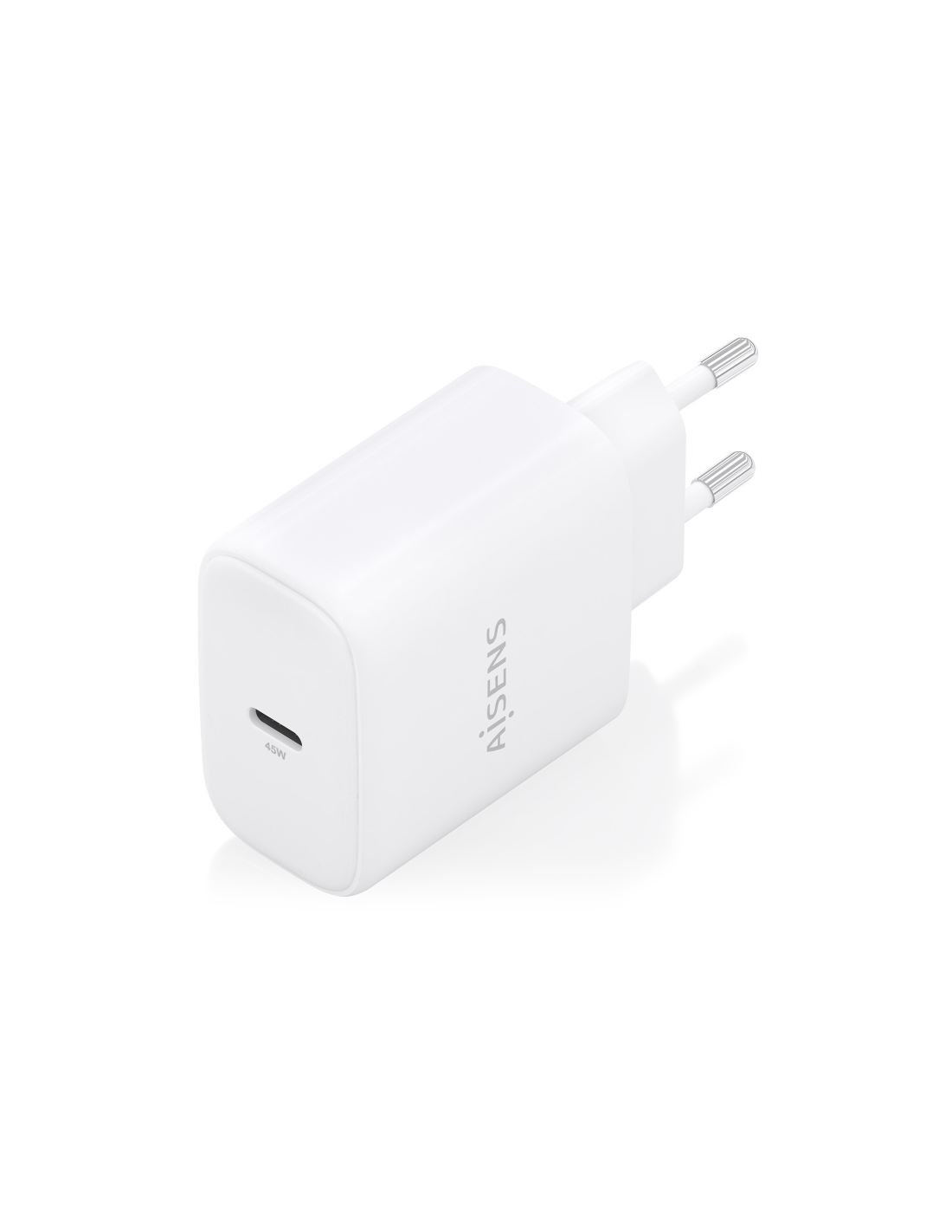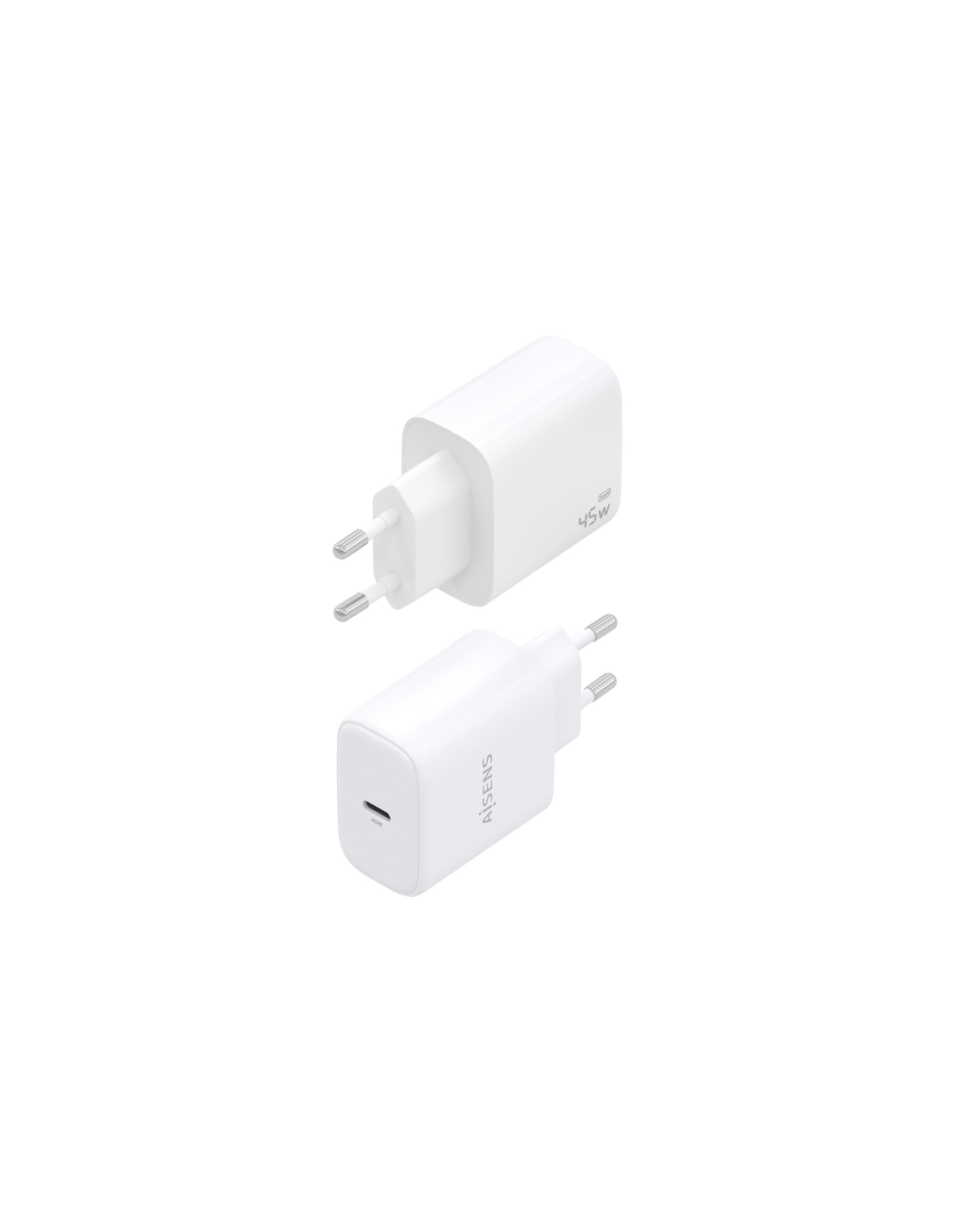 AISENS Cargador GaN 45W, 1xUSB-C PD3.0, Blanco. Tipo de cargador: Interior, Alimentación: Corriente alterna, Compatibilidad del cargador: Cámara digital, GPS, Teléfono móvil, Portátil, Smartphone, Tableta, Universal. Voltaje de entrada: 100 - 240 V, Voltaje de salida máximo: 20 V. Número de puertos USB Tipo C: 1, Carga rápida, Funciones de protección de poder: Sobrecarga, Cortocircuito. Color del producto: Blanco