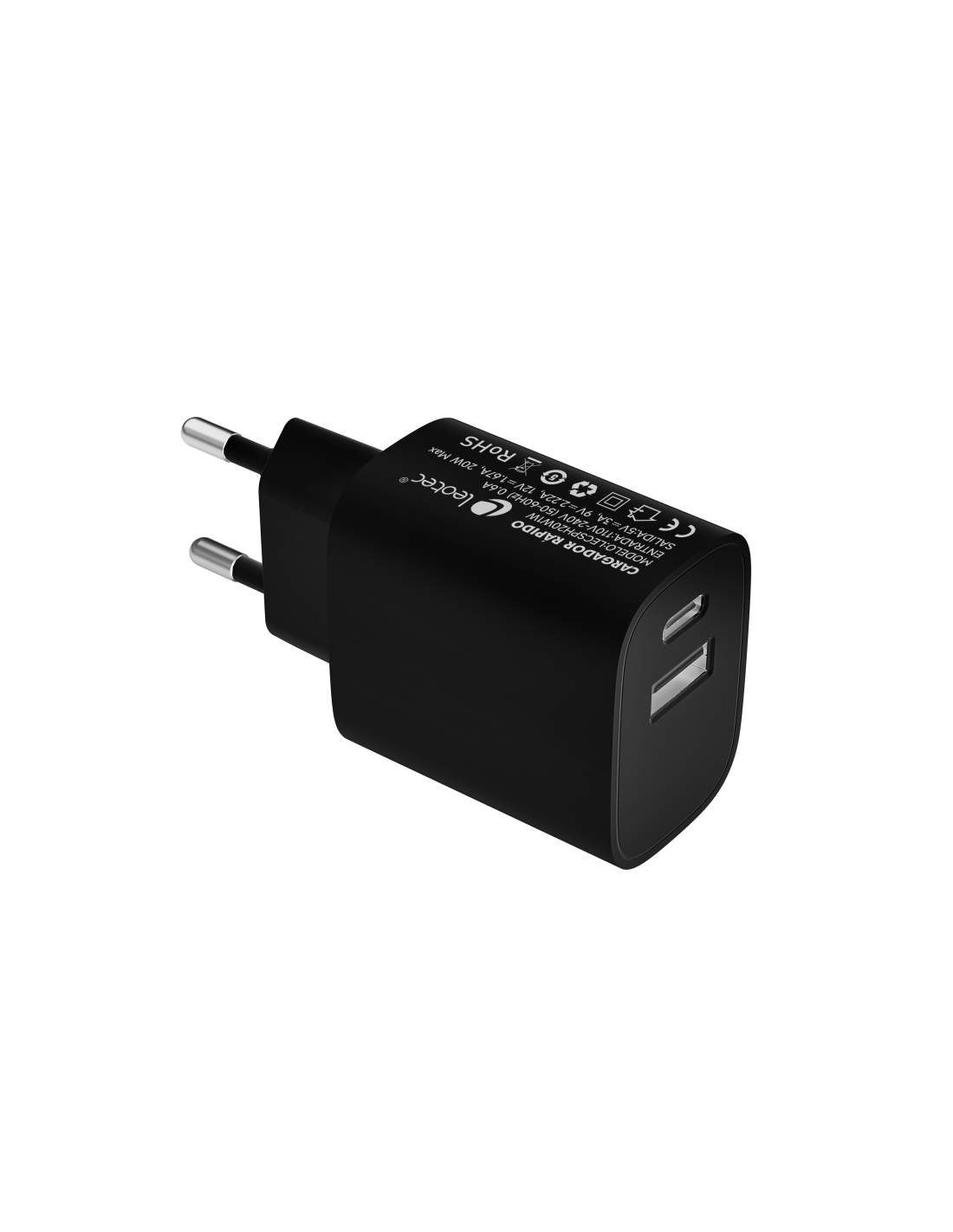 Leotec Cargador 20W 1xUSB-C PD + 1x USB-A Negro