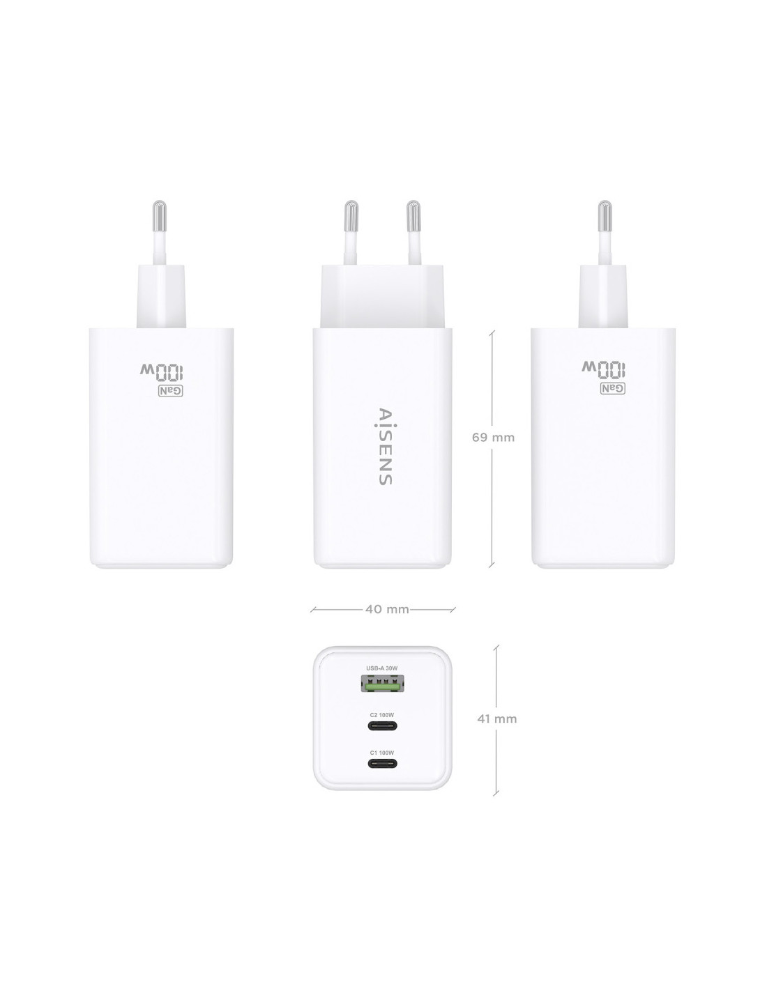 AISENS ASCH-100W3P051-W Carregador de dispositiu mòbil Universal Blanc AC Càrrega ràpida Interiors