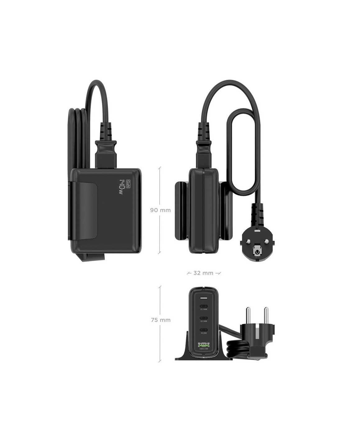 > Cargador de sobremesa GaN USB-C PD3.1 de 140W. Carga rápidamente portátiles, móviles, tablets, cámaras u otros dispositivos. Su diseño de sobremesa ofrece un acceso cómodo y rápido a los puertos USB.