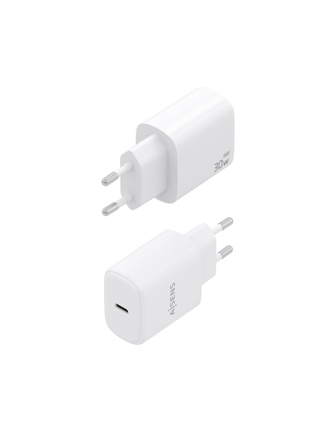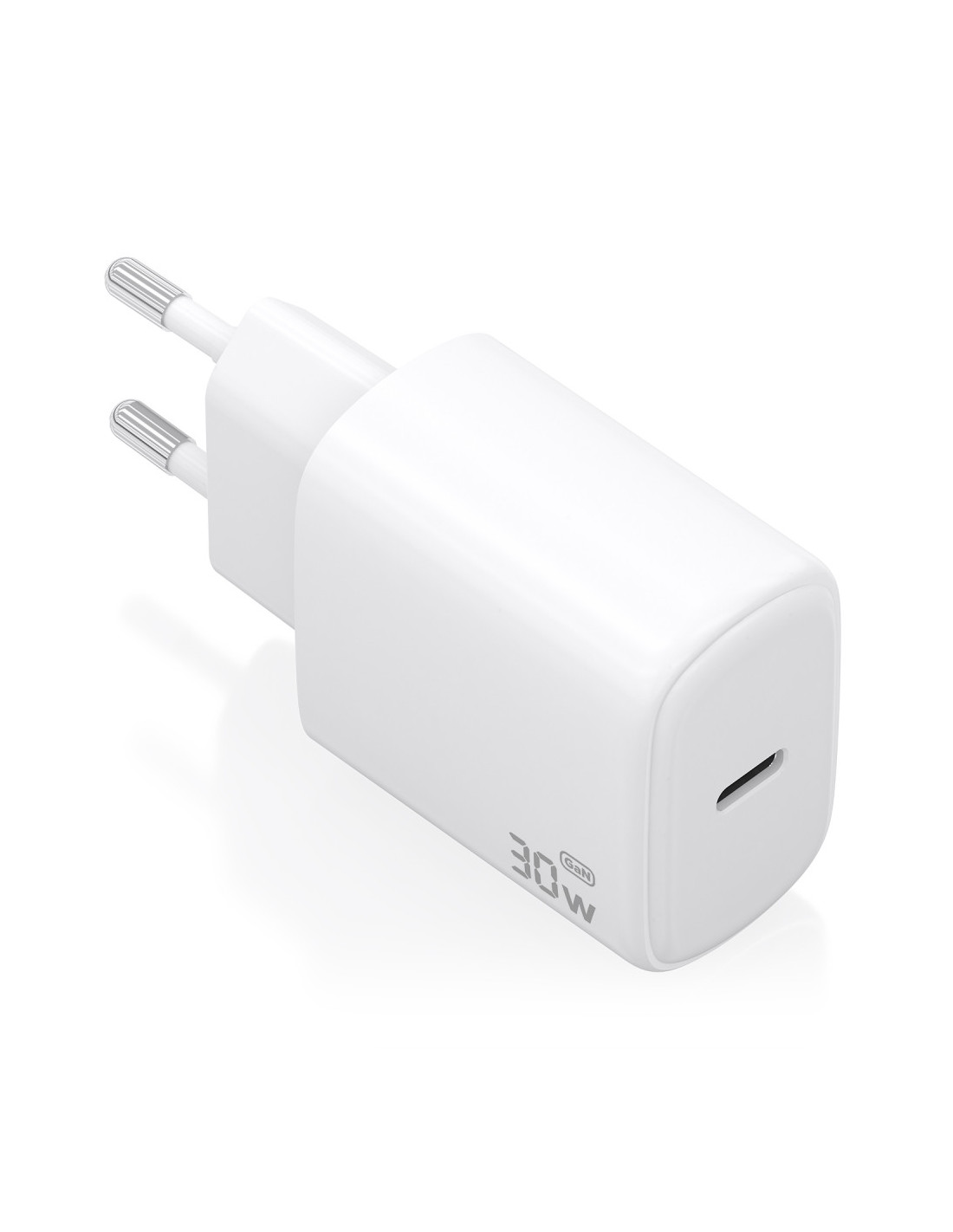 > Cargador GaN USB-C 30W para cargar portátiles, móviles, cámaras y tablets etc. Diseño muy elegante, moderno y práctico.