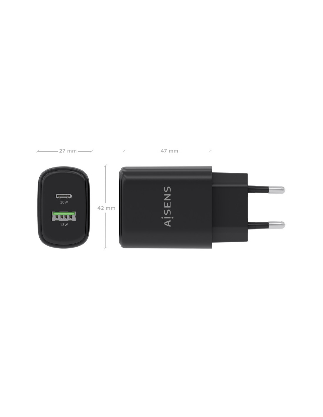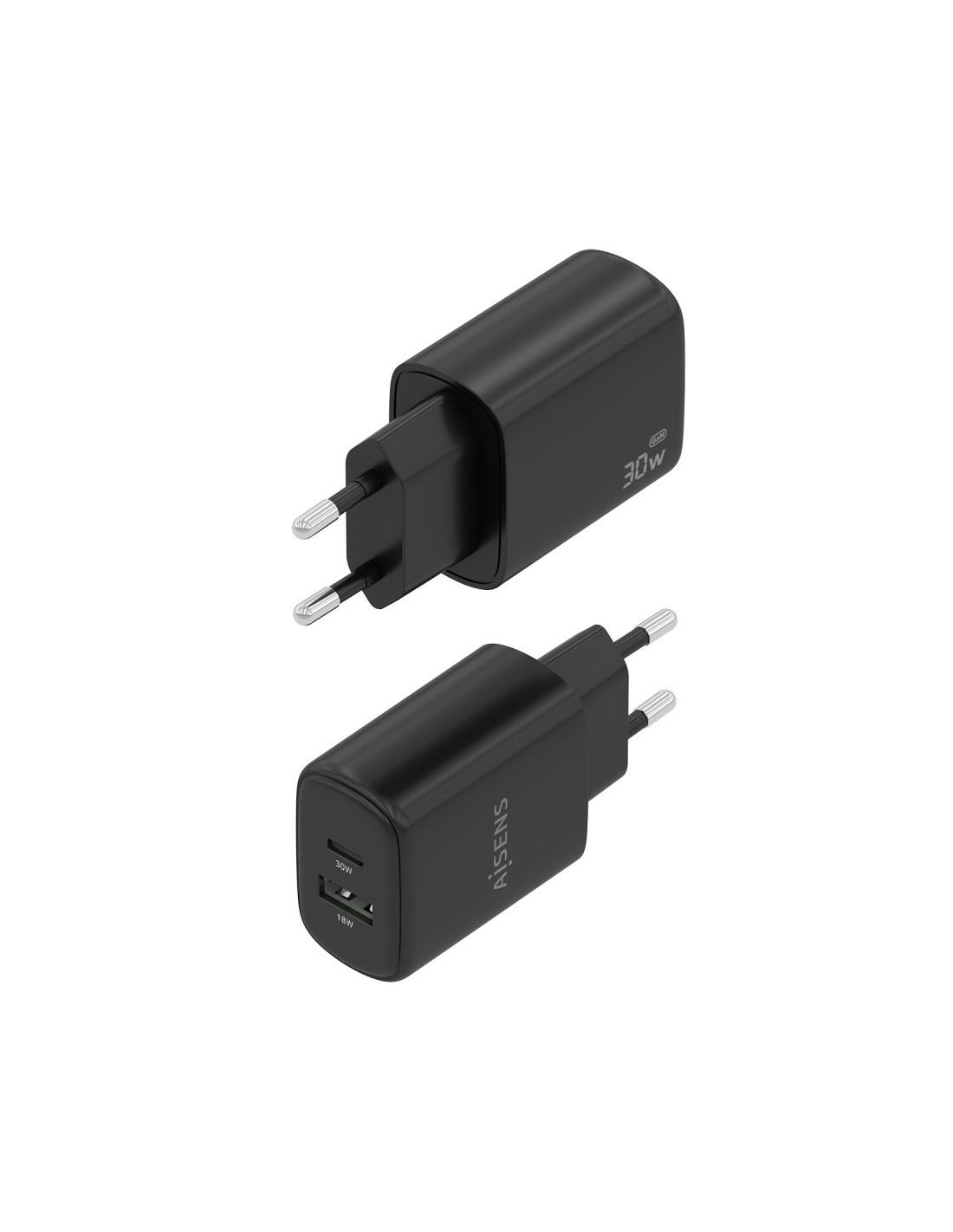> Cargador GaN USB-C 30W para cargar portátiles, móviles, cámaras y tablets etc. Diseño muy elegante, moderno y práctico.