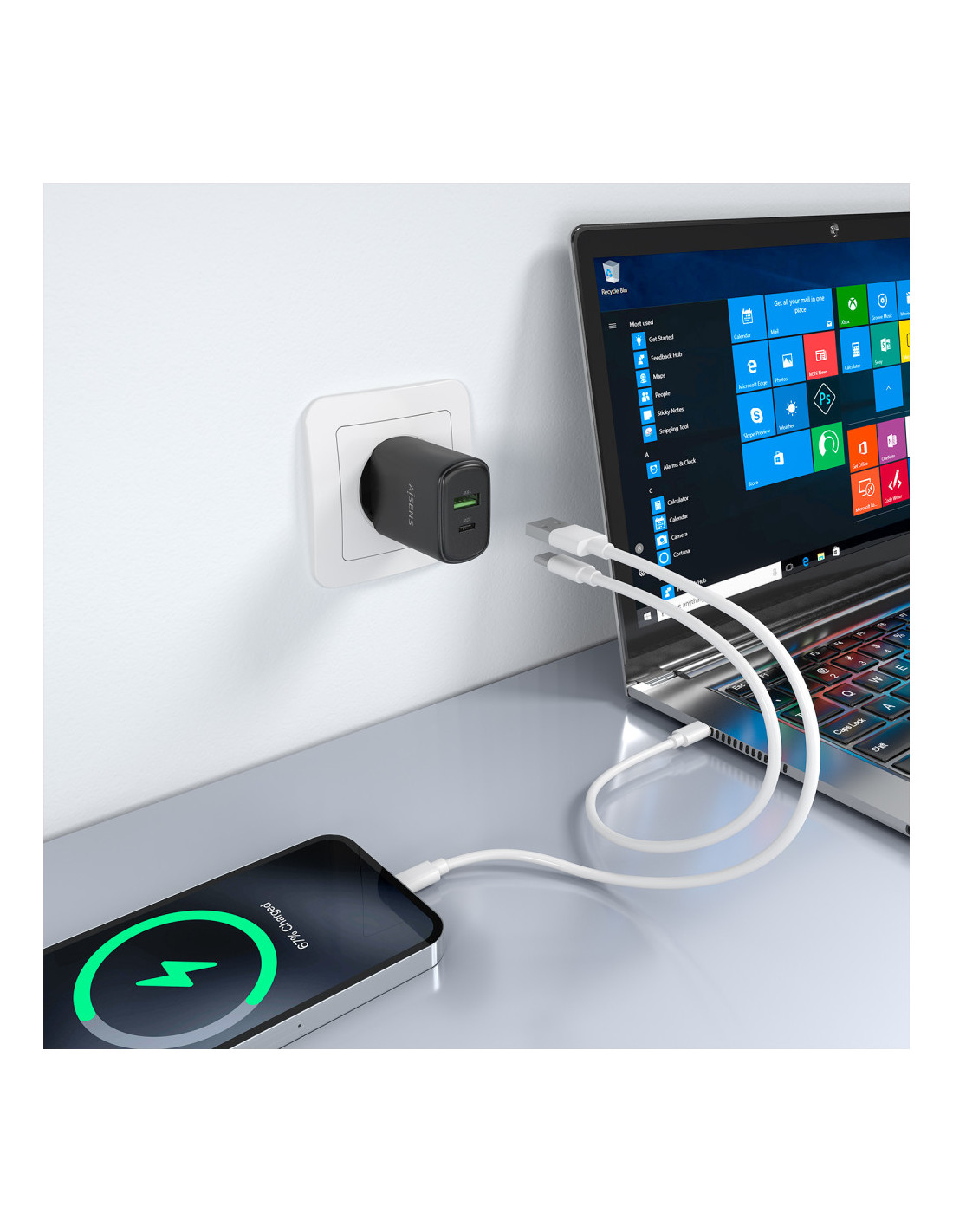 > Cargue su dispositivo USB-C o USB-A de forma fácil y sencilla.