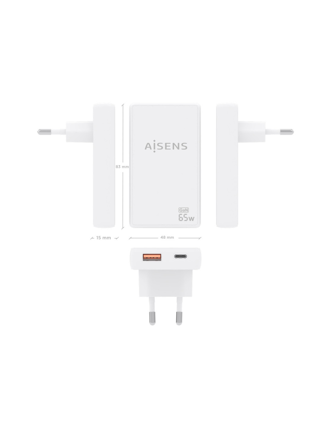 AISENS ASCH-65W2P076-W Carregador de dispositiu mòbil Càmera digital, Telèfon Mòbil, Ordinador portàtil, Telèfon intel·ligent, T