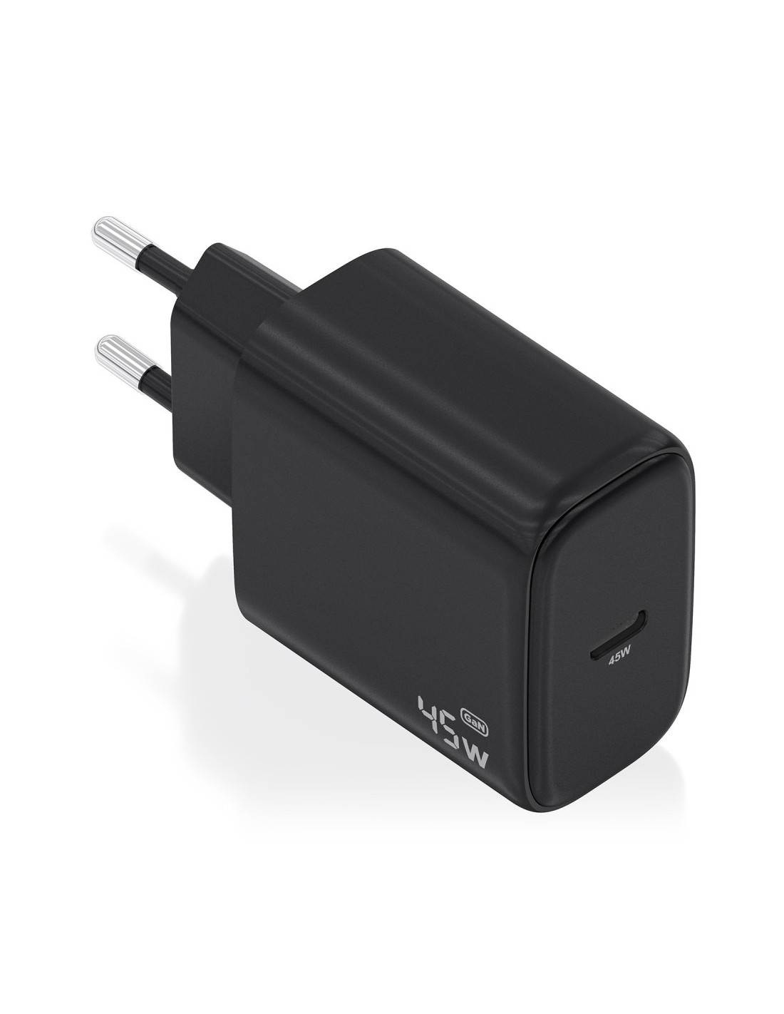 > Cargador GaN USB-C 45W para cargar portátiles, móviles, cámaras y tablets etc. Diseño muy elegante, moderno y práctico.