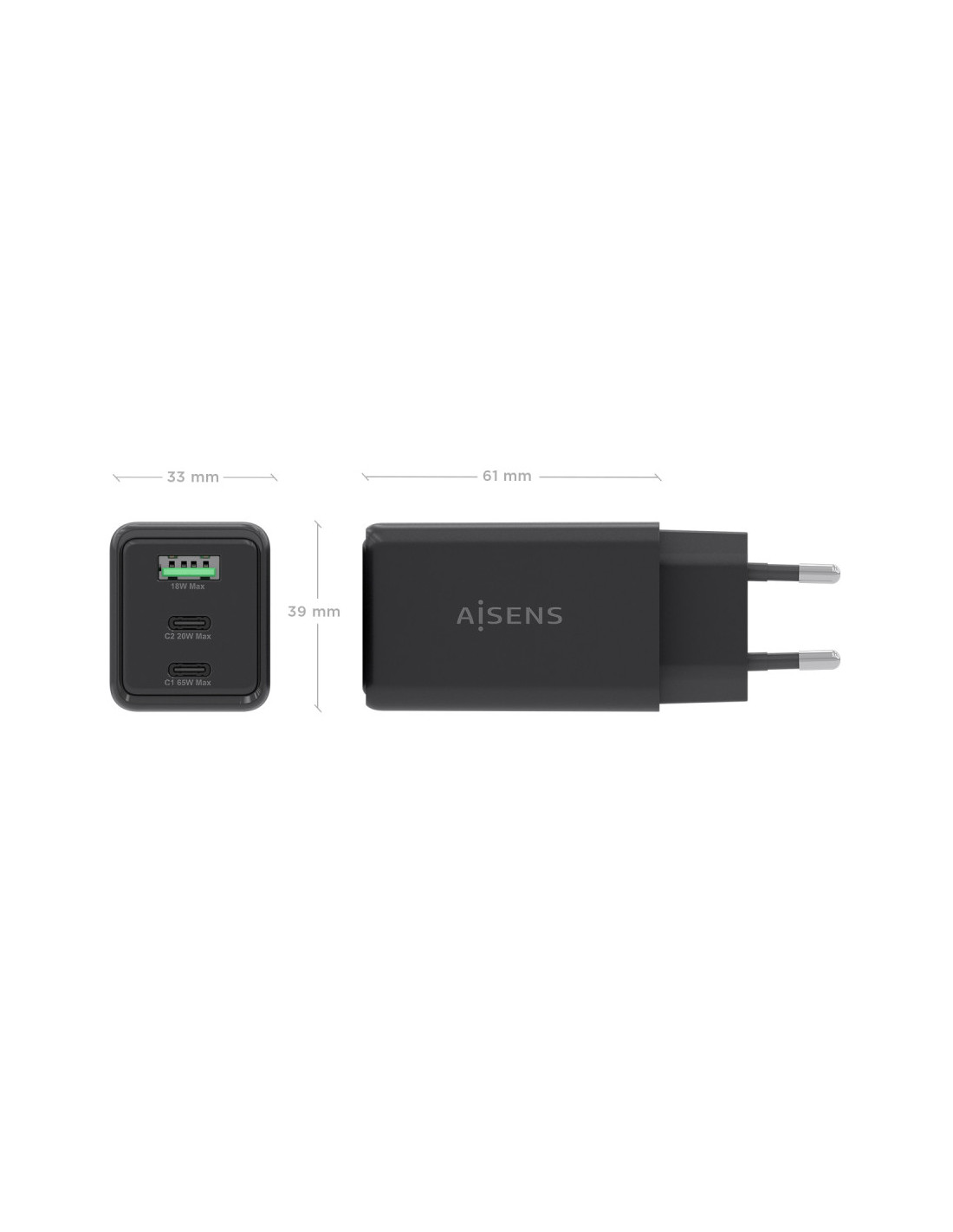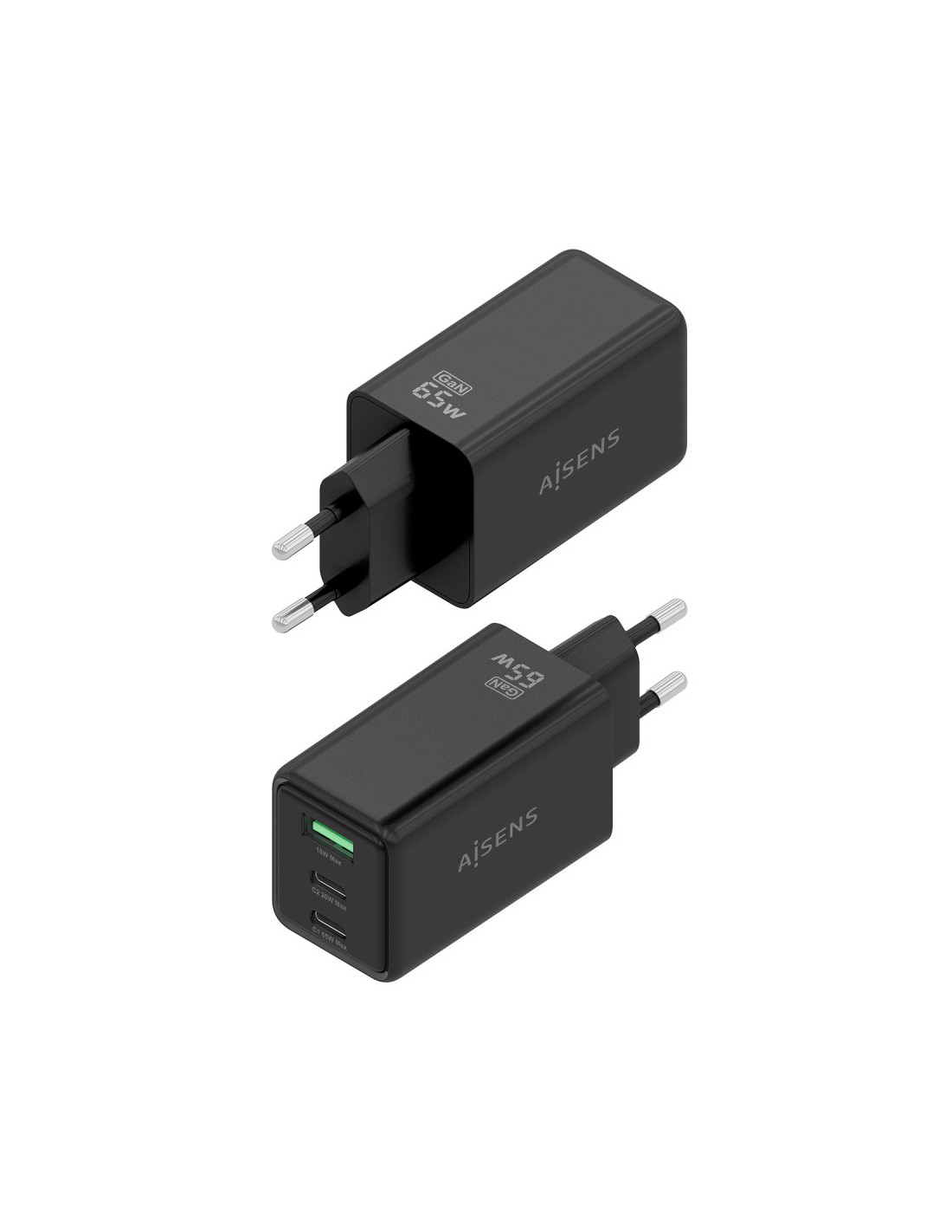 AISENS ASCH-65W3P073-BK Carregador de dispositiu mòbil Càmera digital, GPS, Telèfon Mòbil, Ordinador portàtil, Telèfon intel·lig