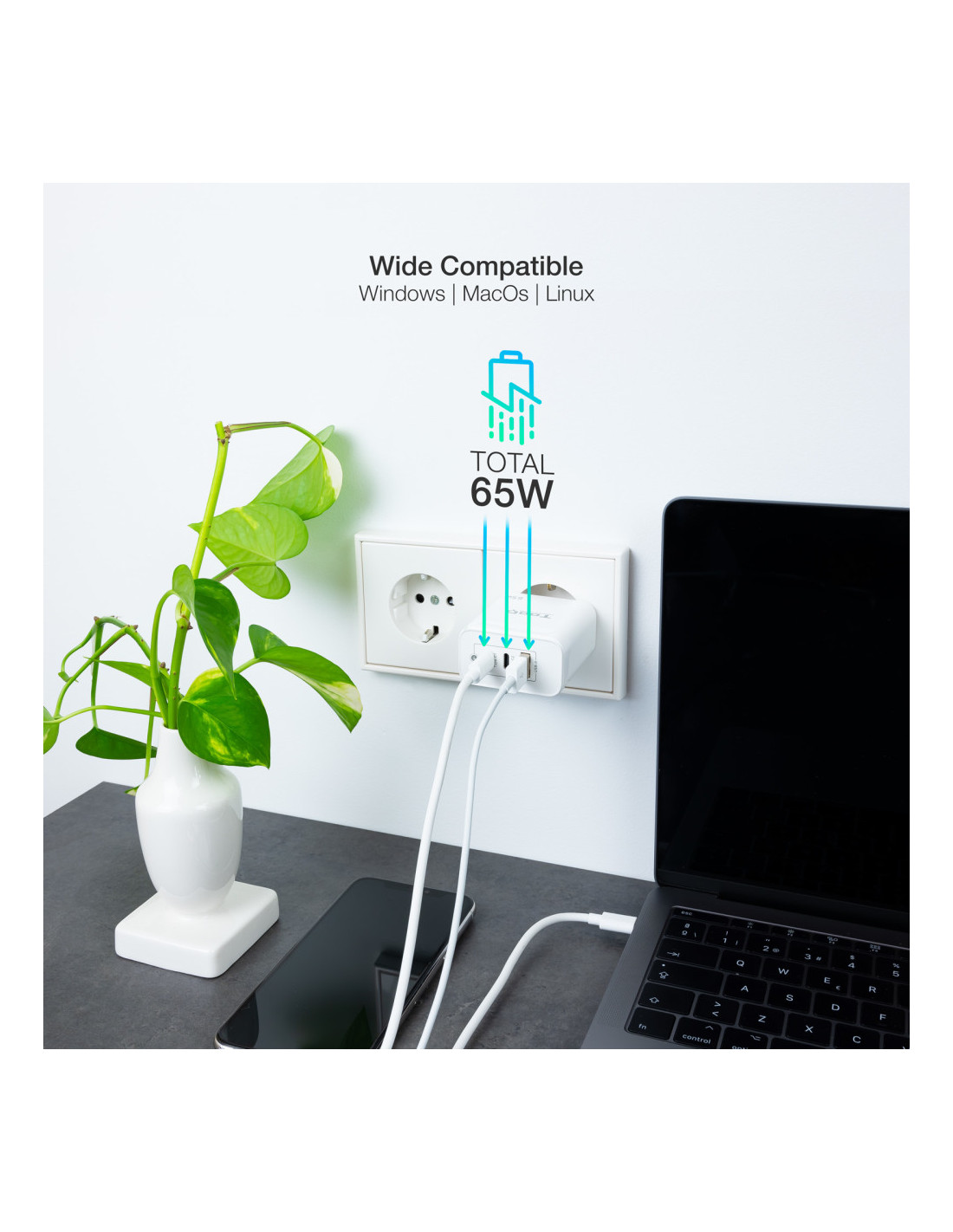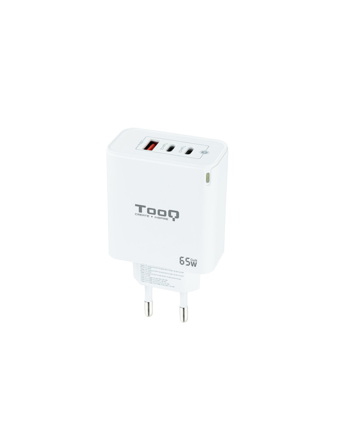 TooQ TQWC-GANQC2PD65WT Carregador de dispositiu mòbil Universal Blanc AC Càrrega ràpida Interiors
