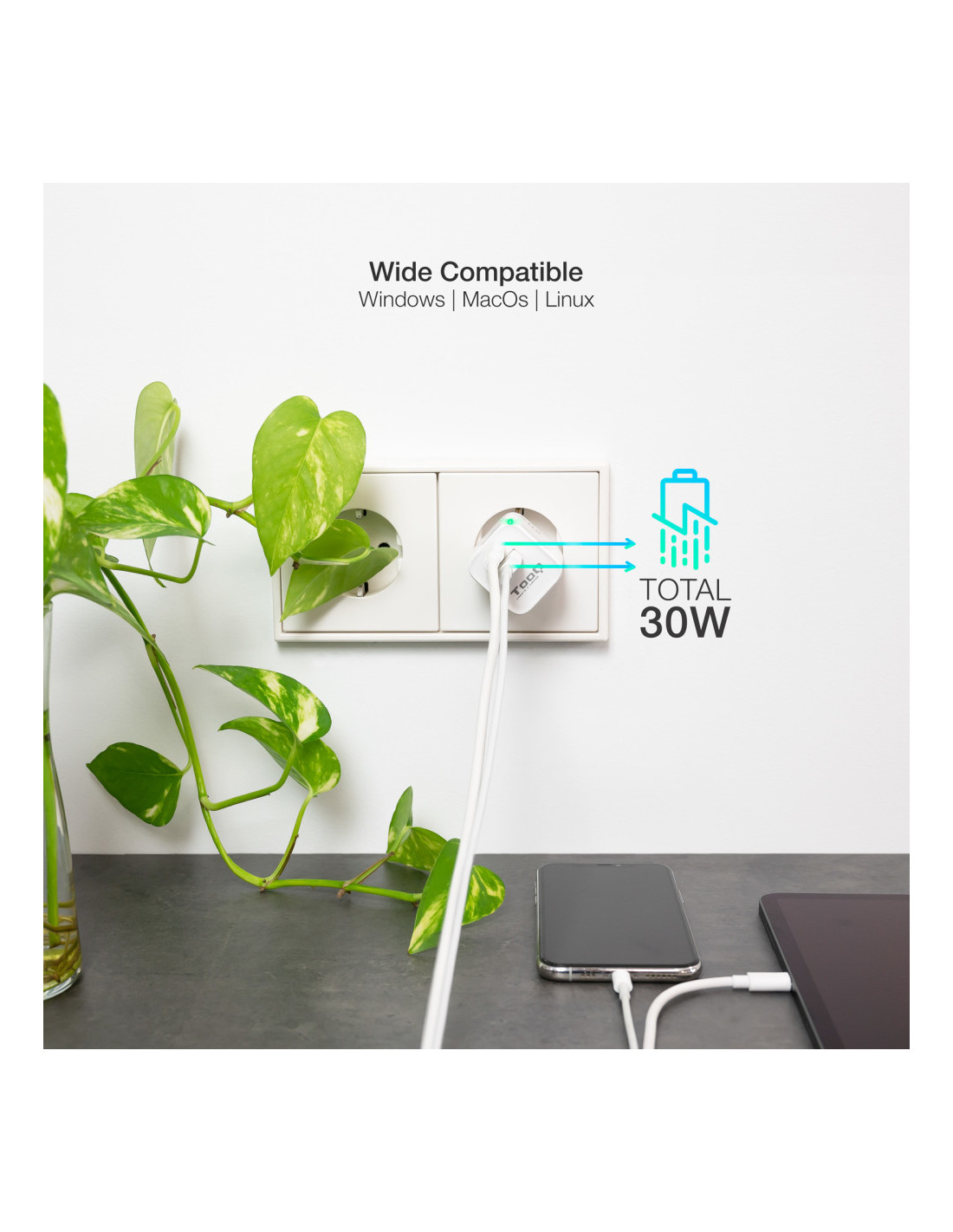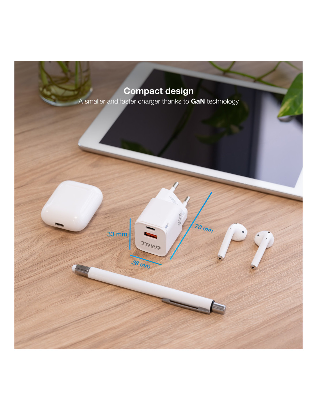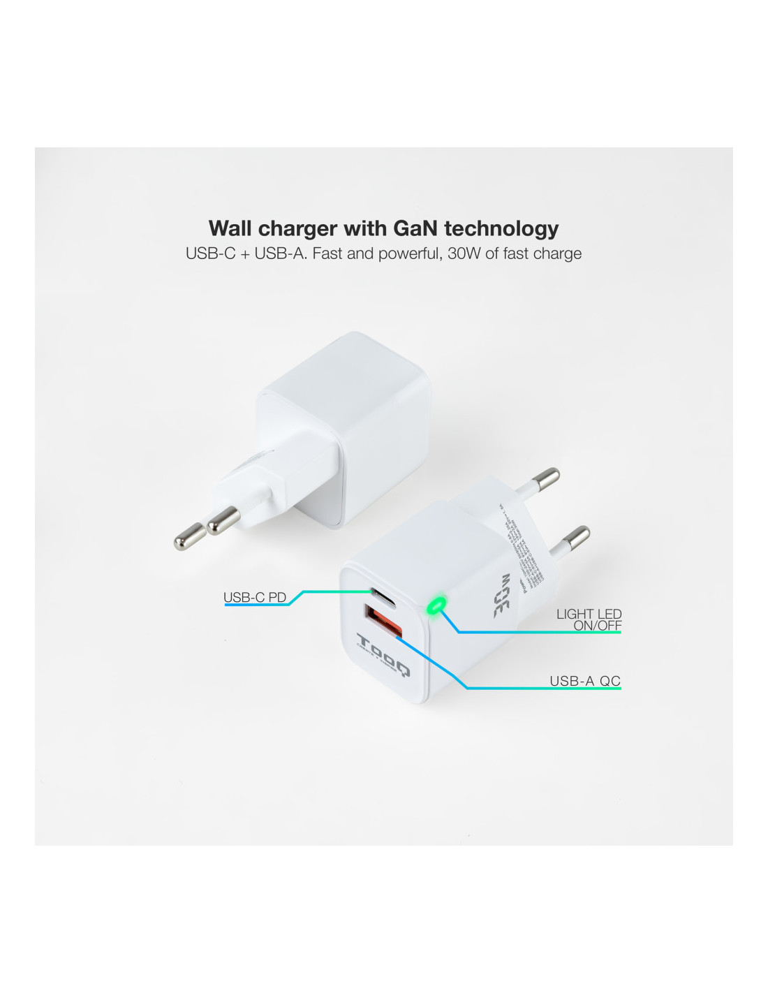 TooQ TQWC-GANQCPD30WT Carregador de dispositiu mòbil Universal Blanc AC Càrrega ràpida Interiors