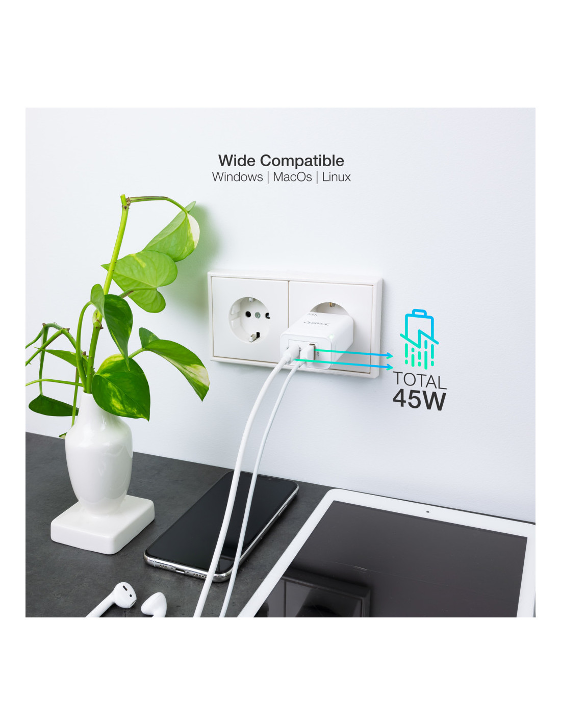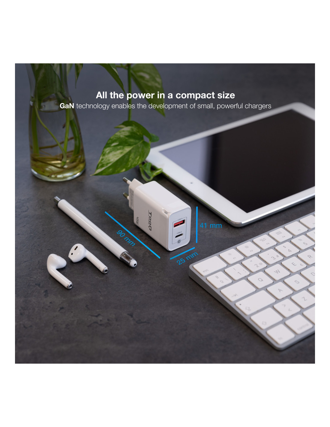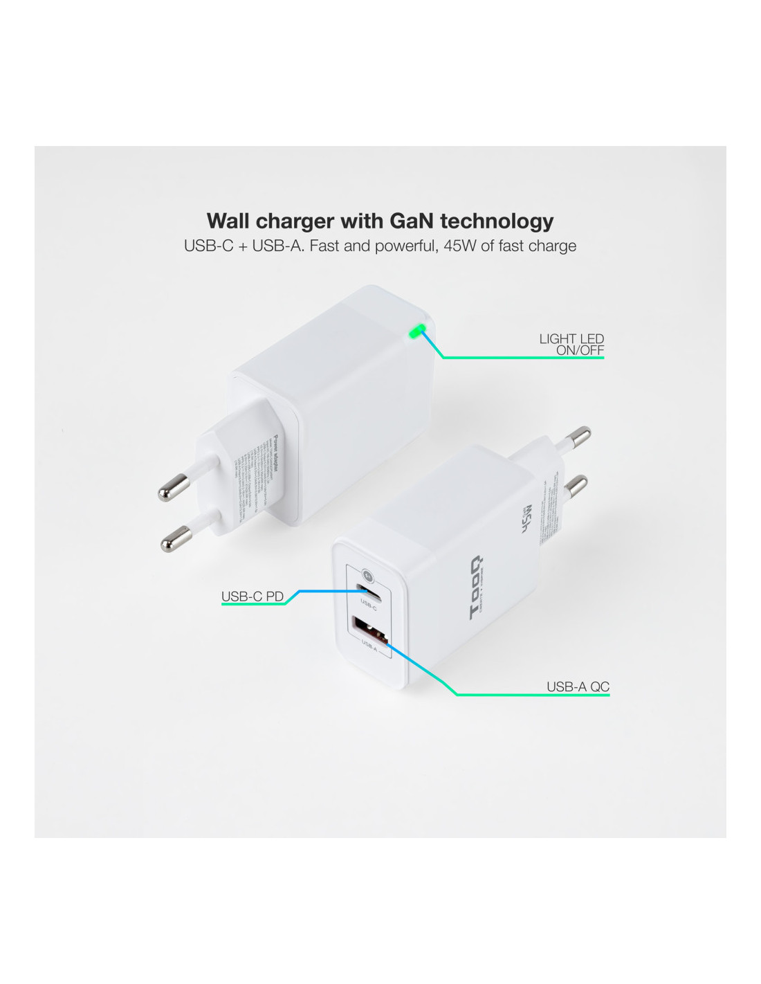 TooQ TQWC-GANQCPD45WT Carregador de dispositiu mòbil Universal Blanc AC Càrrega ràpida Interiors