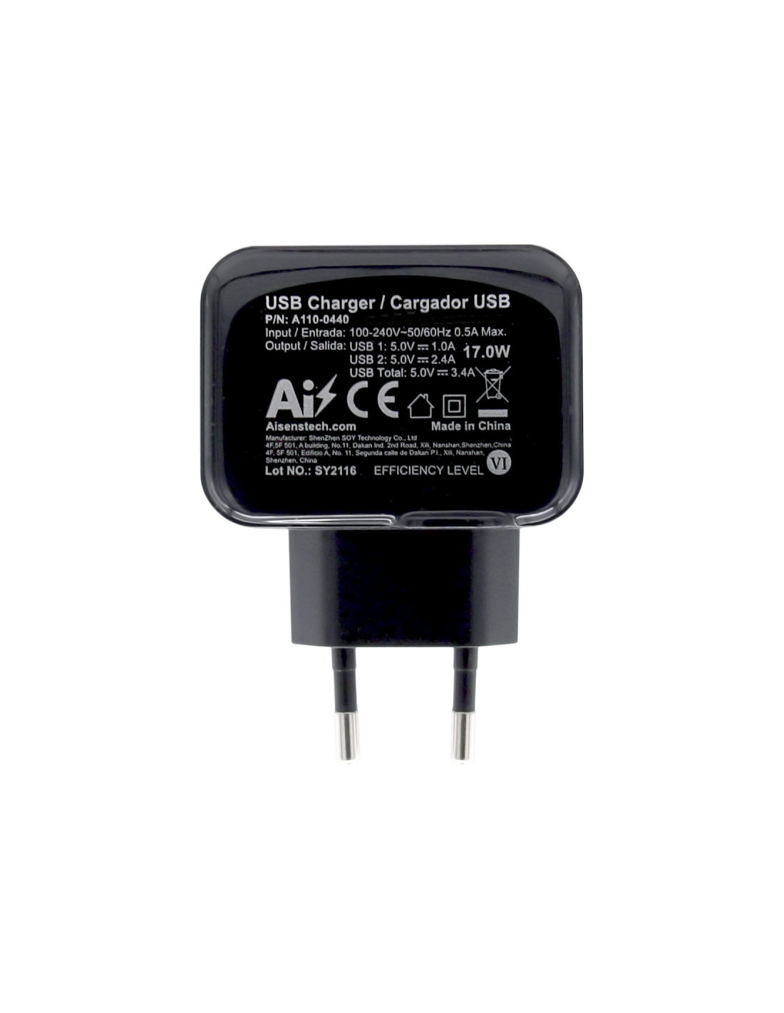 Gracias a la salida de 17W 3,4A, este cargador de pared puede cargar simultáneamente dos dispositivos USB a máxima velocidad (hasta 2,4A/Puerto USB).