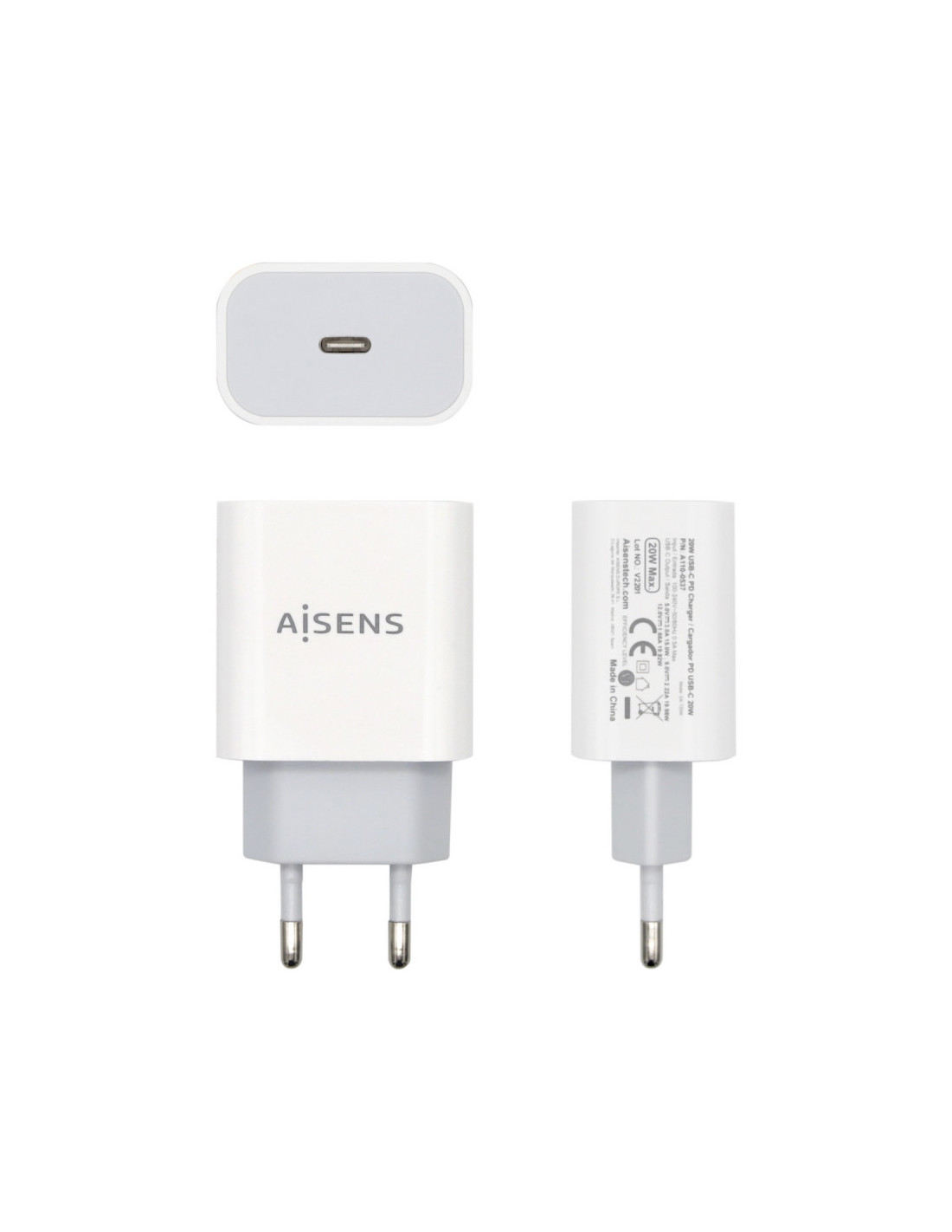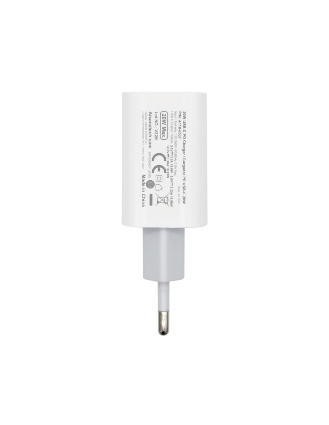 Cargador USB-C 20W para cargar móviles, cámaras y tablets etc. Diseño muy elegante, moderno y práctico.