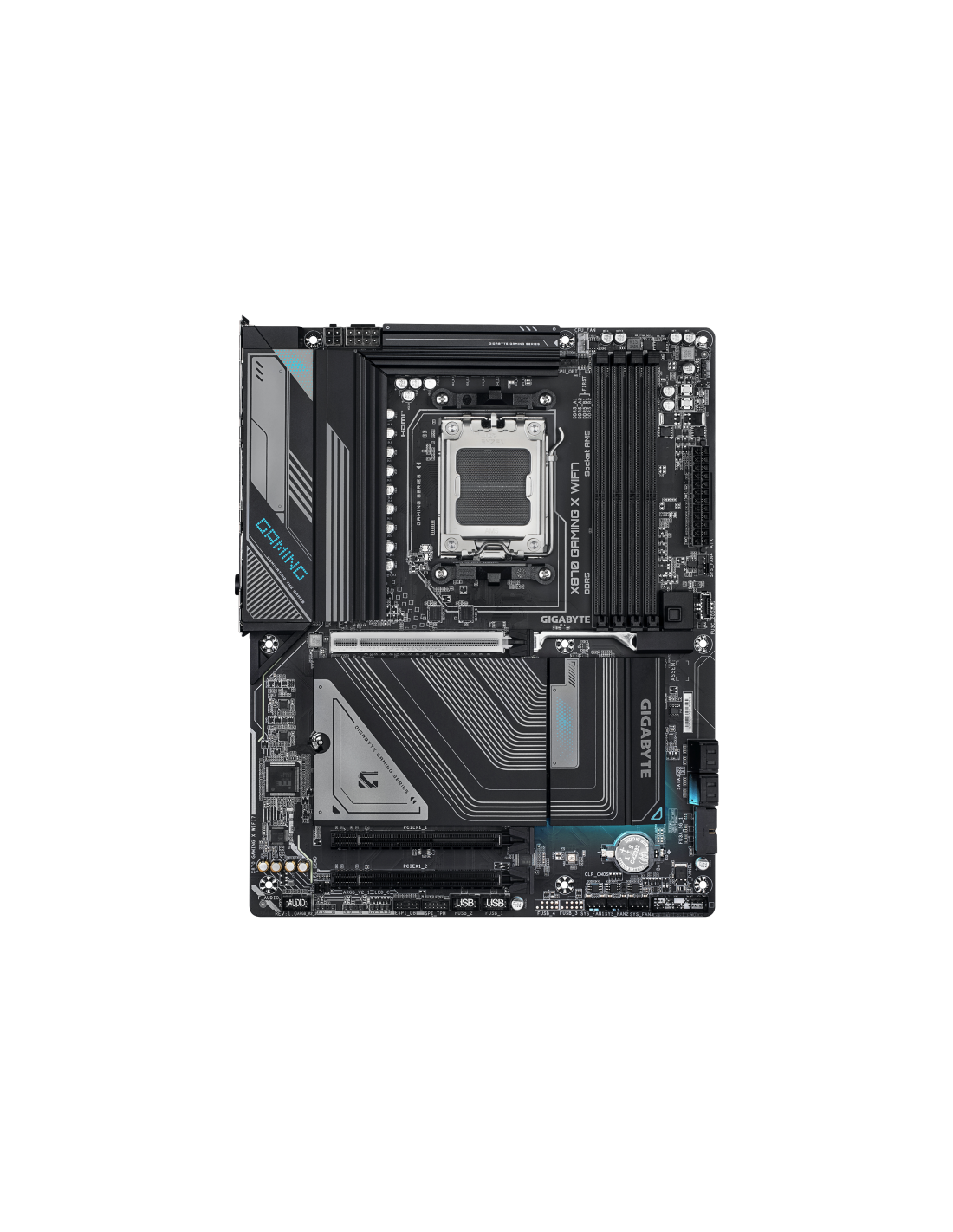GIGABYTE X870 GAMING X WIFI7 Placa Base - Compatible con CPUs AMD Ryzen 9000, 16+2+2 fases VRM, hasta 8000MHz DDR5 (OC), 1xPCIe 5.0 + 2xPCIe 4.0, Wi-Fi 7, LAN 2.5GbE, USB 4. Fabricante de procesador: AMD, Socket de procesador: Zócalo AM5, Procesador compatible: AMD Ryzen 7000 Series, AMD Ryzen 8000 Series, AMD Ryzen 9000 Series. tipos de memoria compatibles: DDR5-SDRAM, Memoria interna máxima: 256 GB, Tipo de ranuras de memoria: DIMM. Interfaces de disco de almacenamiento soportados: M.2, SATA III, Tipos de