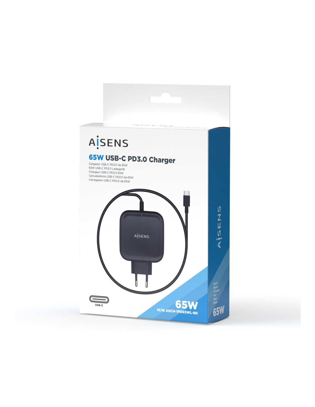 AISENS® – Cargador 65W PD3.0 QC3.0 1XUSB-C 1.2M, Negro