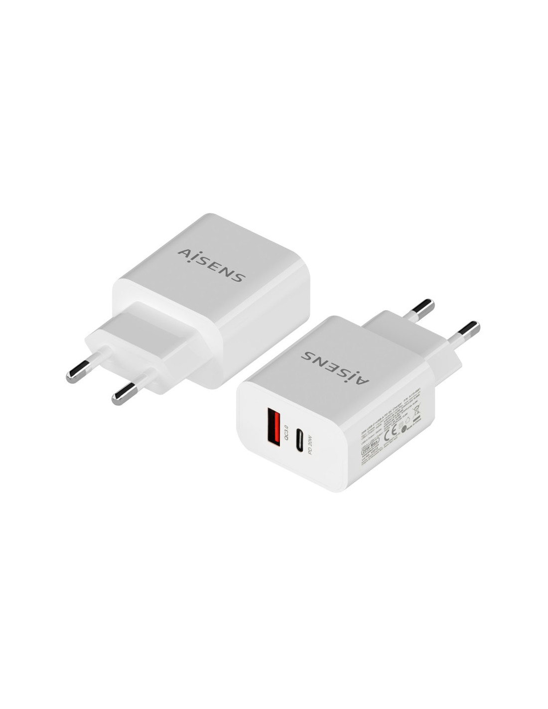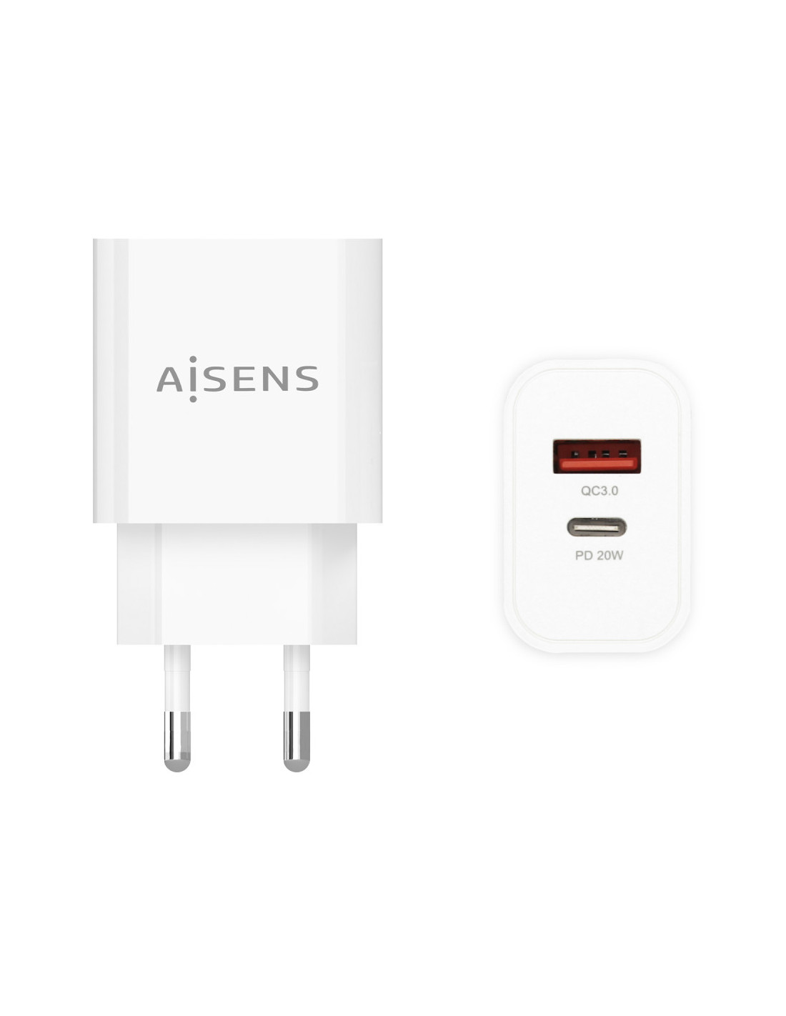 AISENS® – Cargador 20W, 1xUSB-C PD3.0, 1xUSB-A QC3.0, Blanco