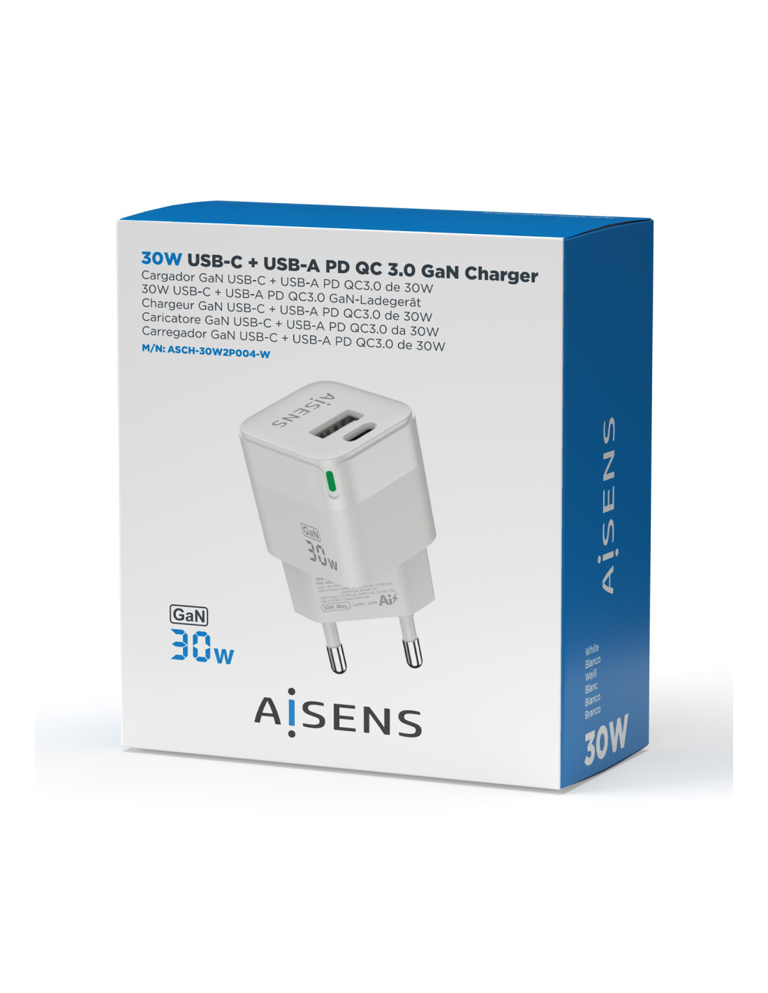 AISENS ASCH-30W2P004-W Carregador de dispositiu mòbil Universal Blanc AC Càrrega ràpida Interiors