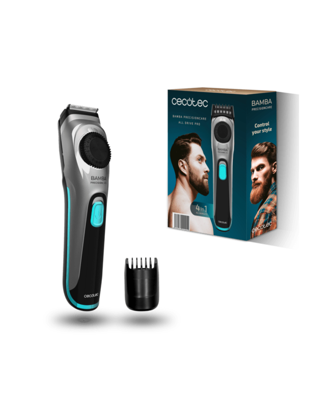 Cecotec Bamba PrecisionCare AllDrive Pro. Color del producto: Negro, Plata, Longitud mínima del cabello: 1 mm, Longitud máxima del cabello: 2 cm. Fuente de energía: AC/Batería, Tiempo de funcionamiento: 90 min, Tipo de batería: Batería integrada