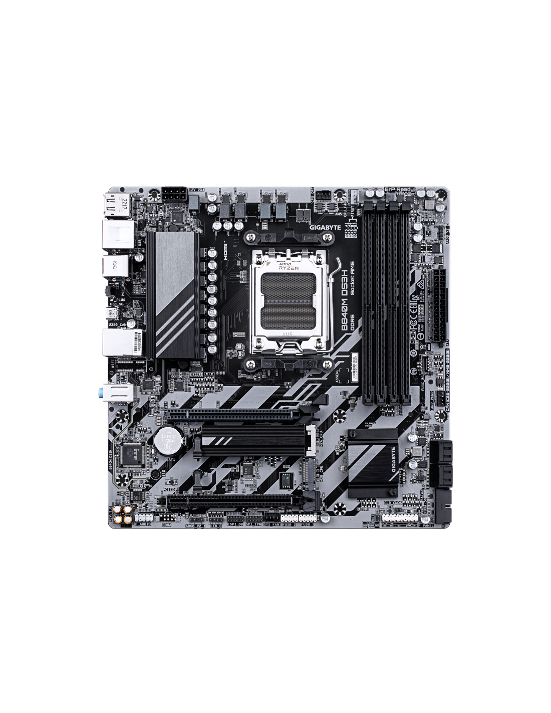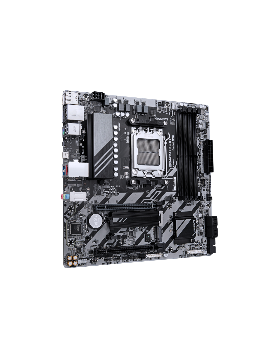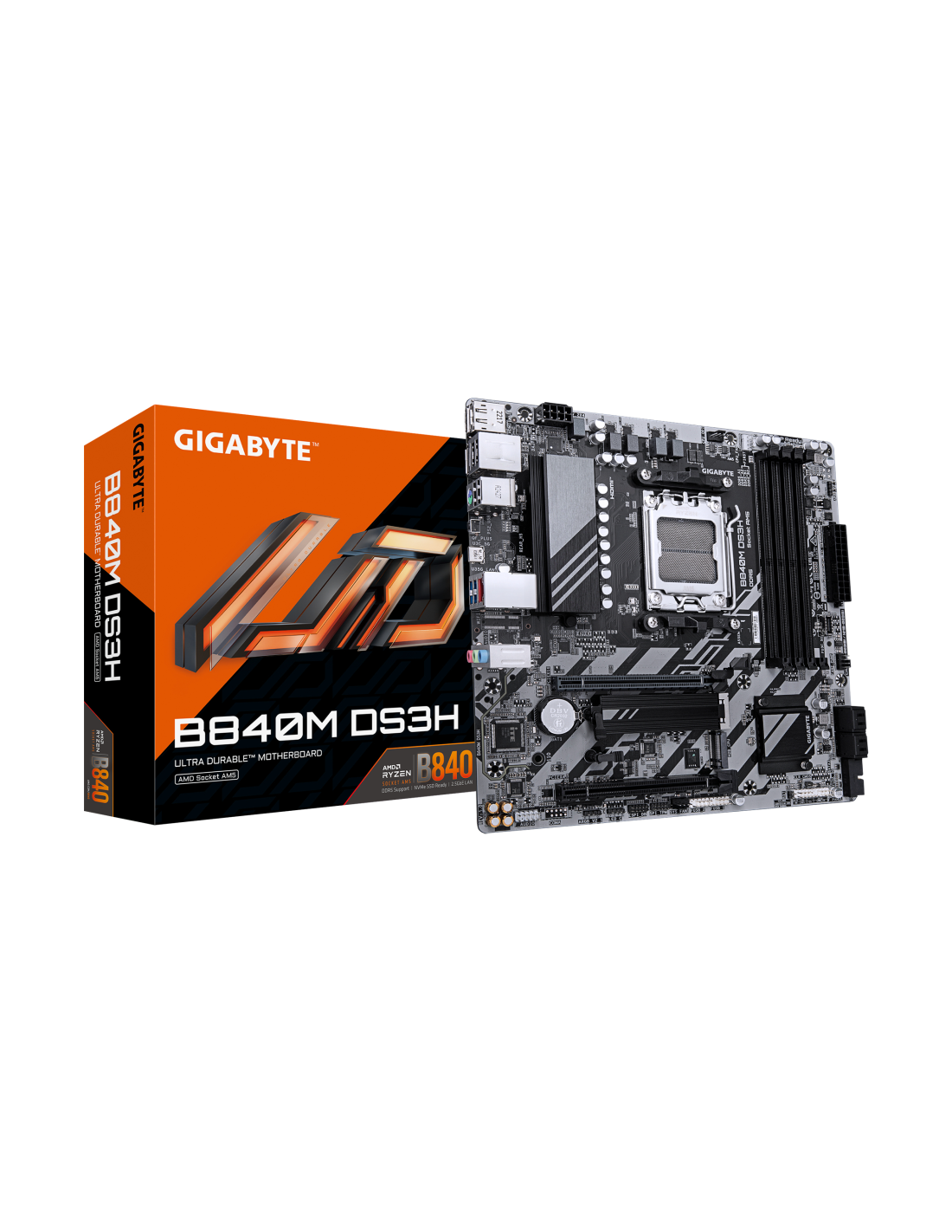 GIGABYTE B840M DS3H Placa base - Procesadores AMD Ryzen 9000, VRM de 8+2+2 fases, hasta 8200 MHz DDR5, 2xPCIe 4.0 M.2, LAN 2.5Gb