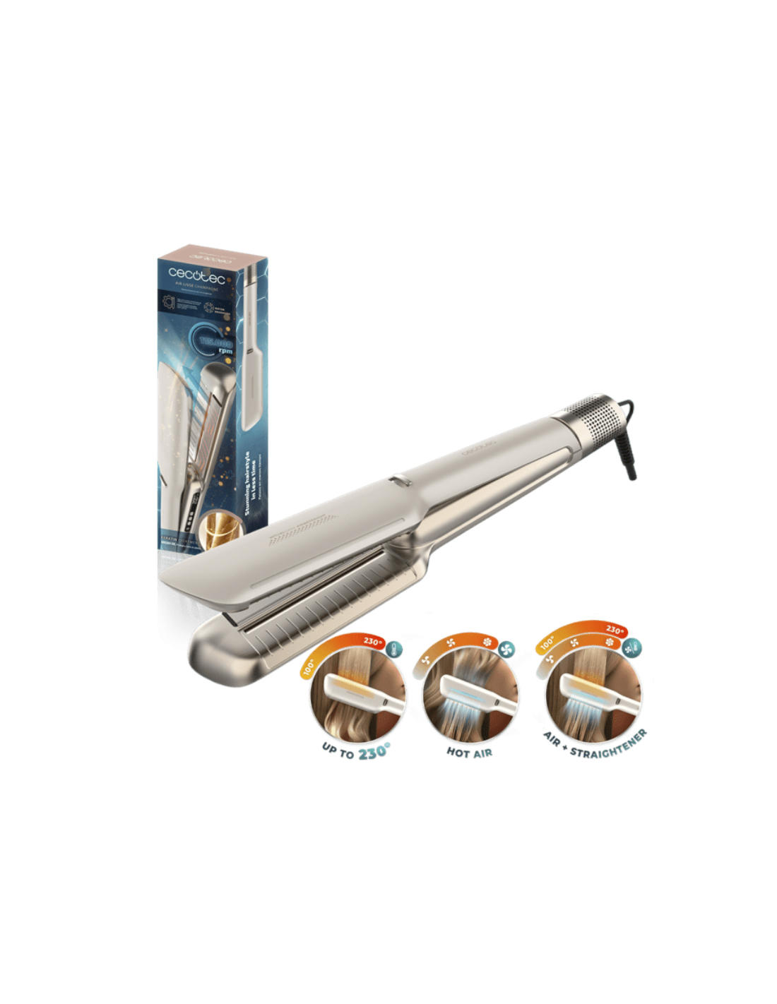 Cecotec Air Lisse Champagne. Tipo: Plancha de pelo, Tecnología: Caliente, Adecuado para tipos de cabello: Todo el pelo. Color del producto: Champán, Material de la placa: Queratina y cerámica