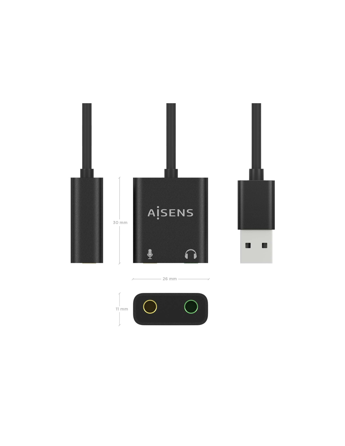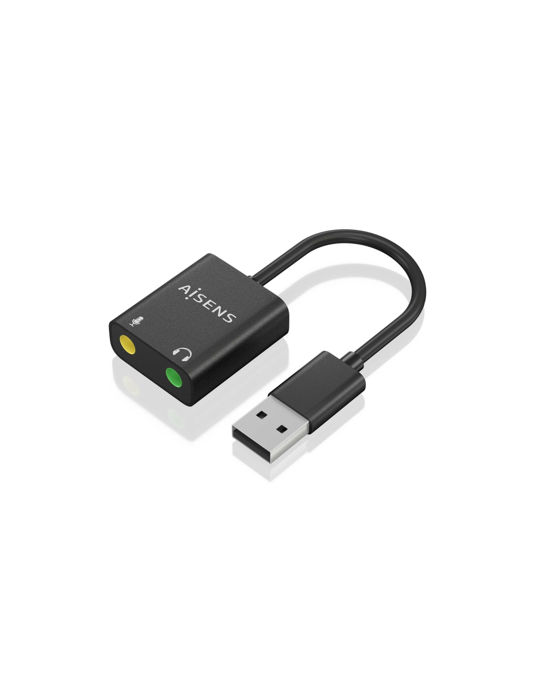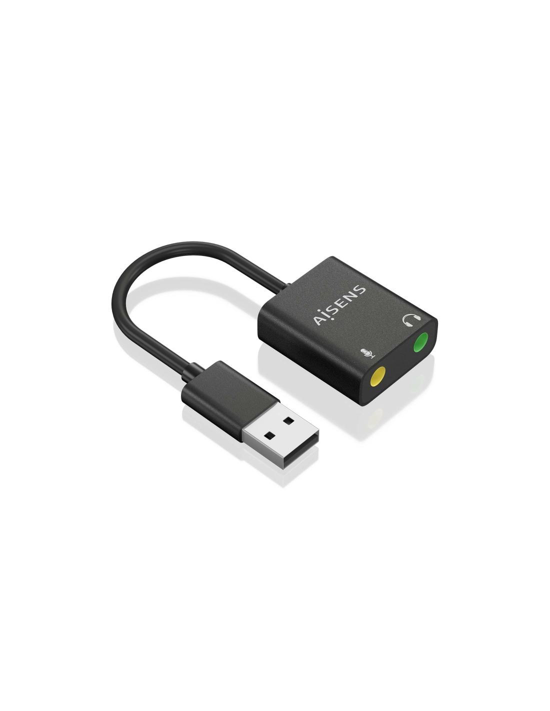 AISENS Conversor USB-A a Audio 48KHz, USB-A/M-2xJack 3.5/H, Negro, 10 cm. Conector 1: USB-A, Conector 2: 2x 3.5 mm, Longitud de cable: 0,1 m. Color del producto: Negro
