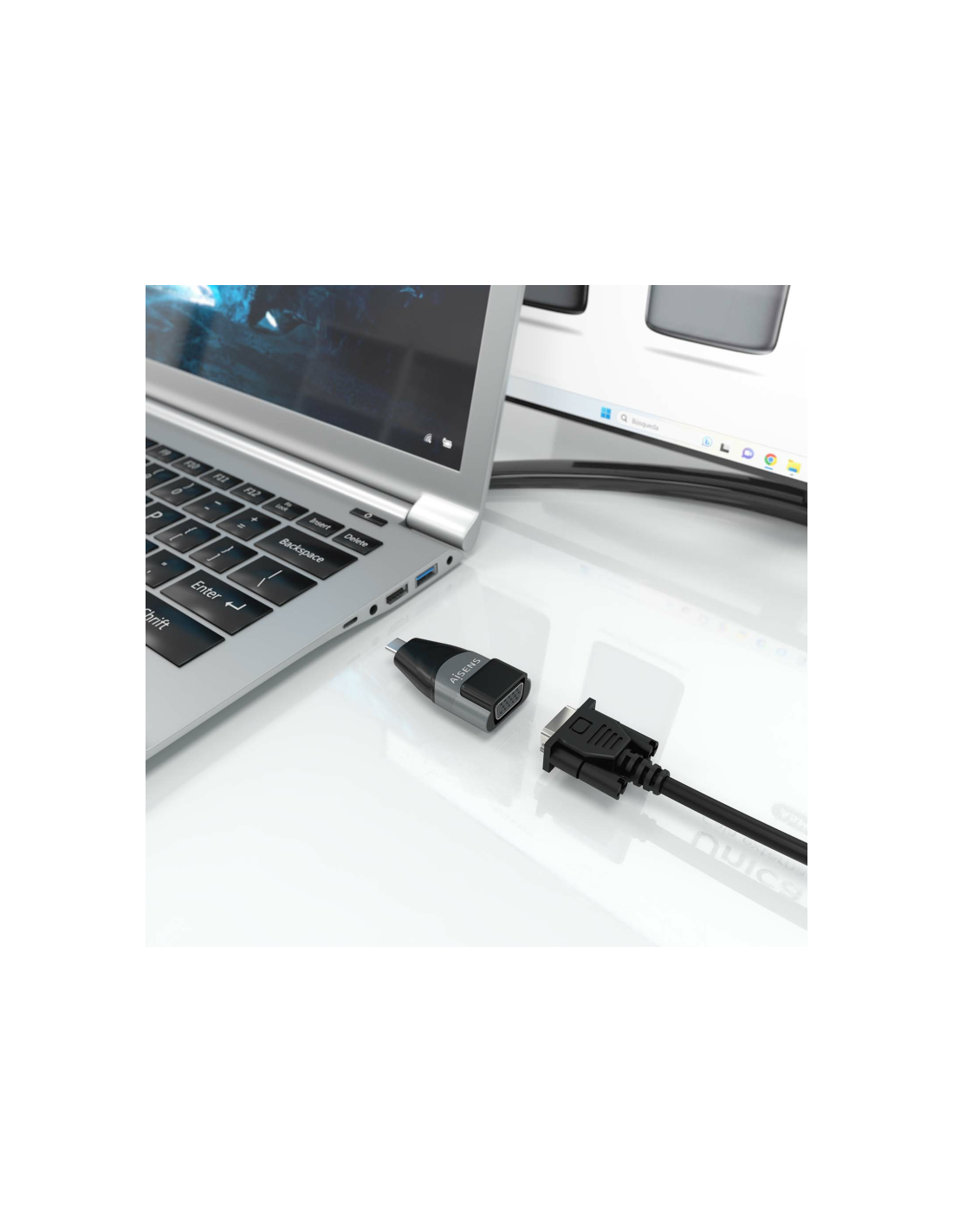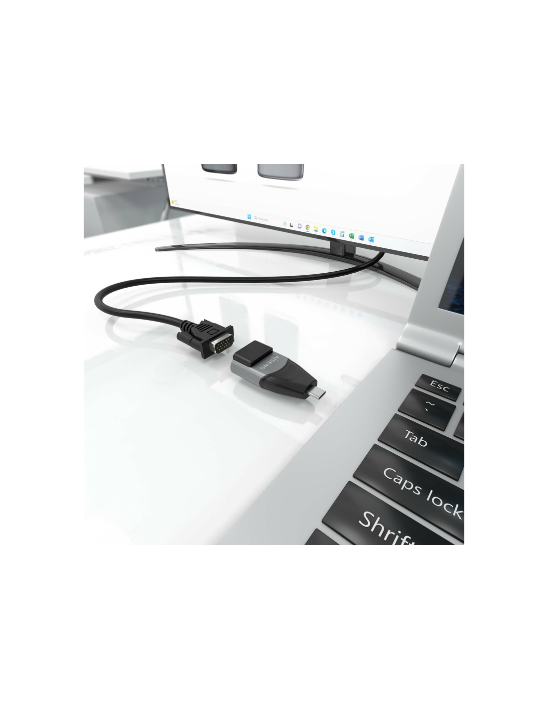 AISENS® – Adaptador Conversor Aluminio USB-C a VGA, USB-C/M-HDB15/H, Gris