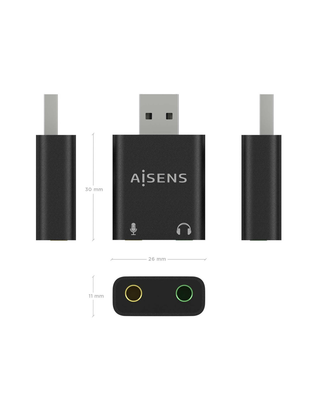 AISENS A106-0768 canviador de gènere per a cables USB-A 2x 3.5 mm Negre