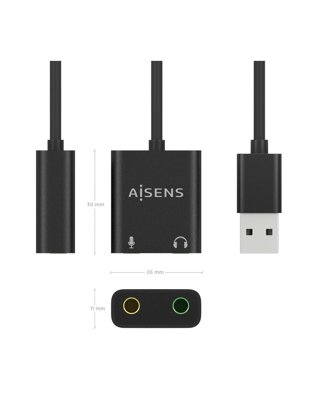 AISENS A106-0769 canviador de gènere per a cables USB-A 2x 3.5 mm Negre