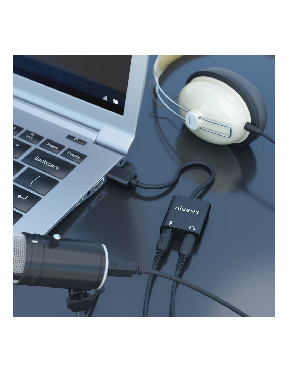 Permite transmitir señales de USB a audio (auriculares y micrófono).