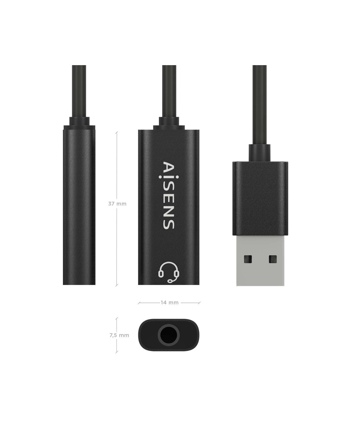 AISENS A106-0770 canviador de gènere per a cables USB-A 3.5 mm Negre